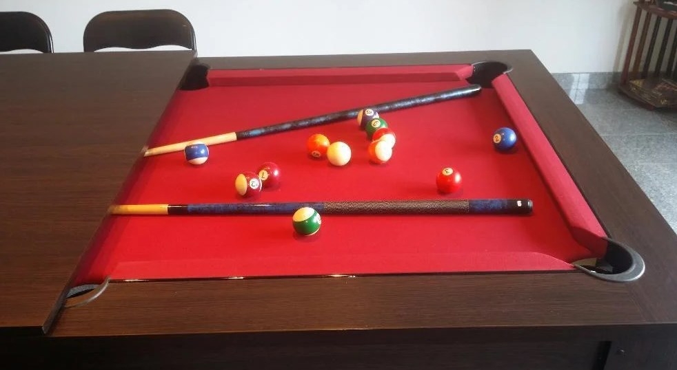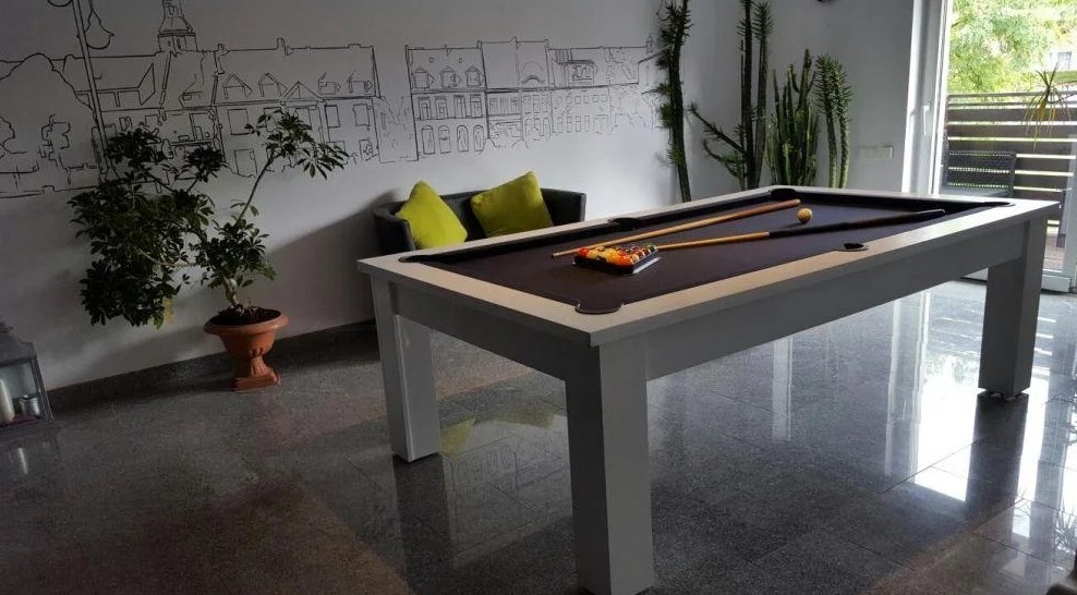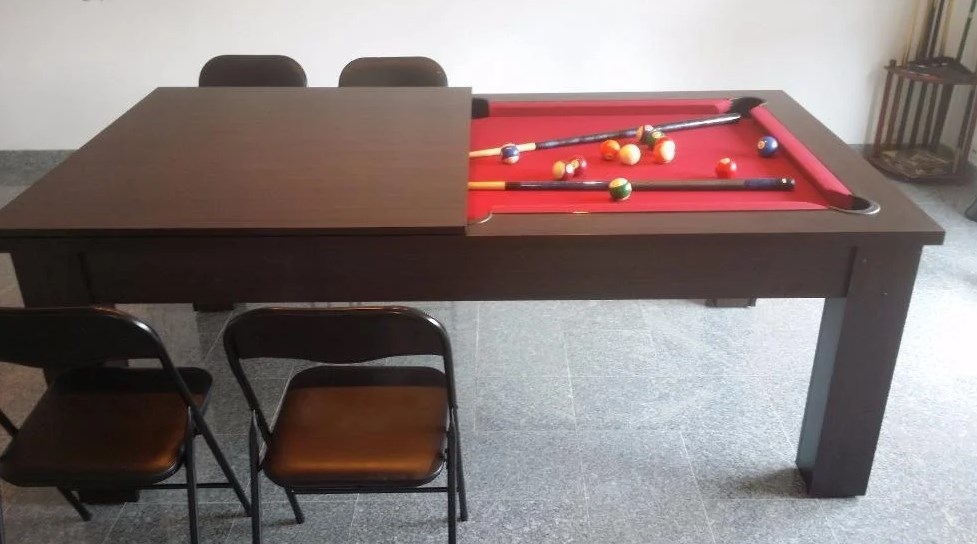Обідній стіл легко трансформується в більярдний ndash; для цього необхідно всього лише зняти стільницю столу.