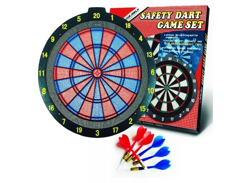 Дартс, зроблений з поліпропілену. Міцний і поставляється з 6 додатковими дротиками і 6 змінними наконечниками.