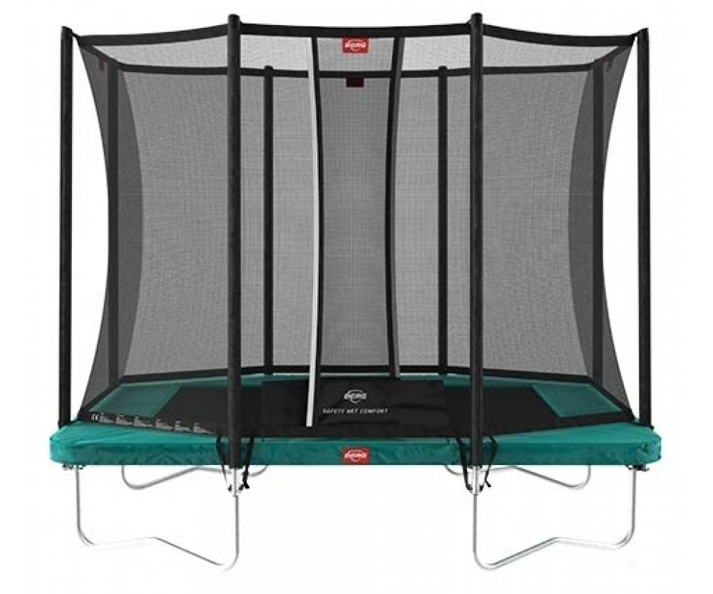 Прямокутний батут Berg з сіткою безпеки Comfort в комплектації серії Berg Favorit - дивовижна можливість придбати прямокутний батут зі збільшеною площею комфортних стрибків. Ця площа була збільшена за рахунок відсутності відцентрової сили в даних моделях і спеціальних пружин. Колір стрибкового покриття в даній моделі - зелений.