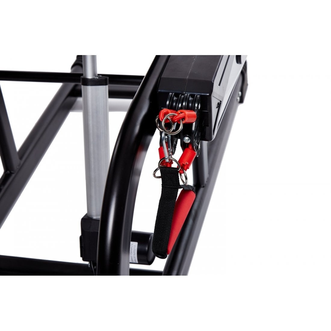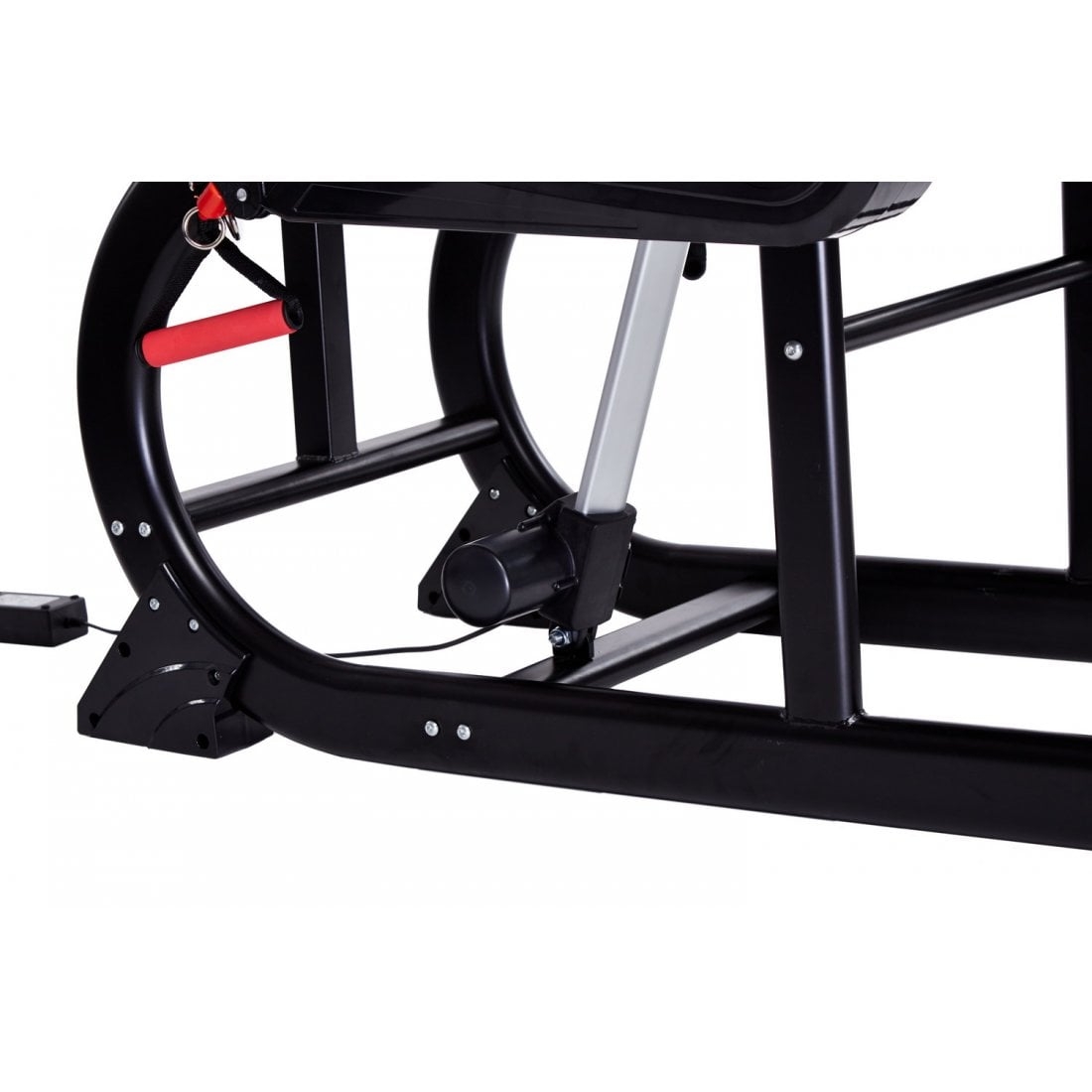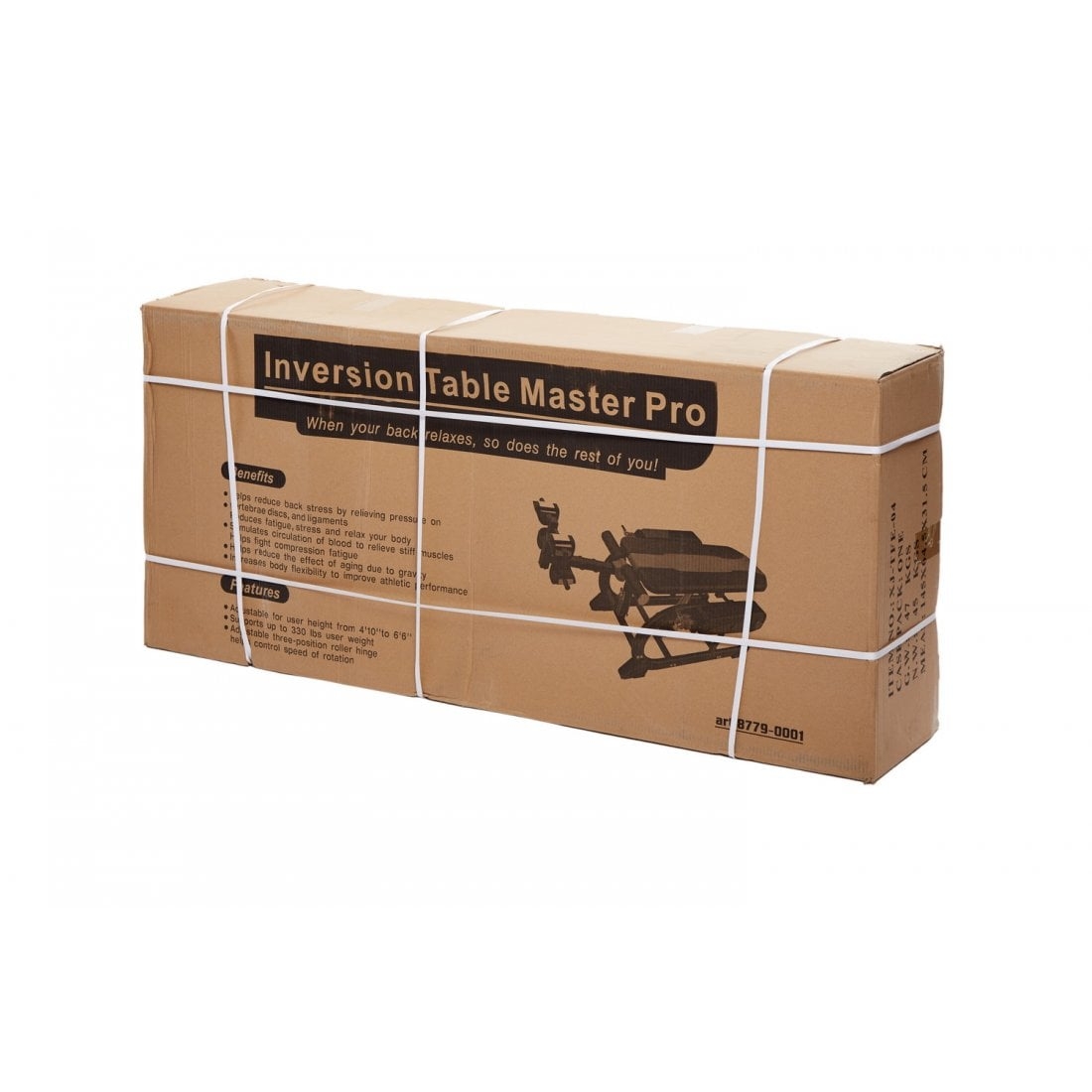 Fit-On Master Pro - це високоякісний інверсійний стіл з відмінними характеристиками і з вбудованим електромотором. Він може обертатися на 180 градусів і потрібно всього лише натиснути кнопку. Конструкція столу виготовлена із овальних сталевих профілів. Інверсійний стіл Master Pro додатково оснащений еспандерами, які активують м'язи рук та грудей. Цей інверсійний стіл витримує навантаження в 150 кг!
