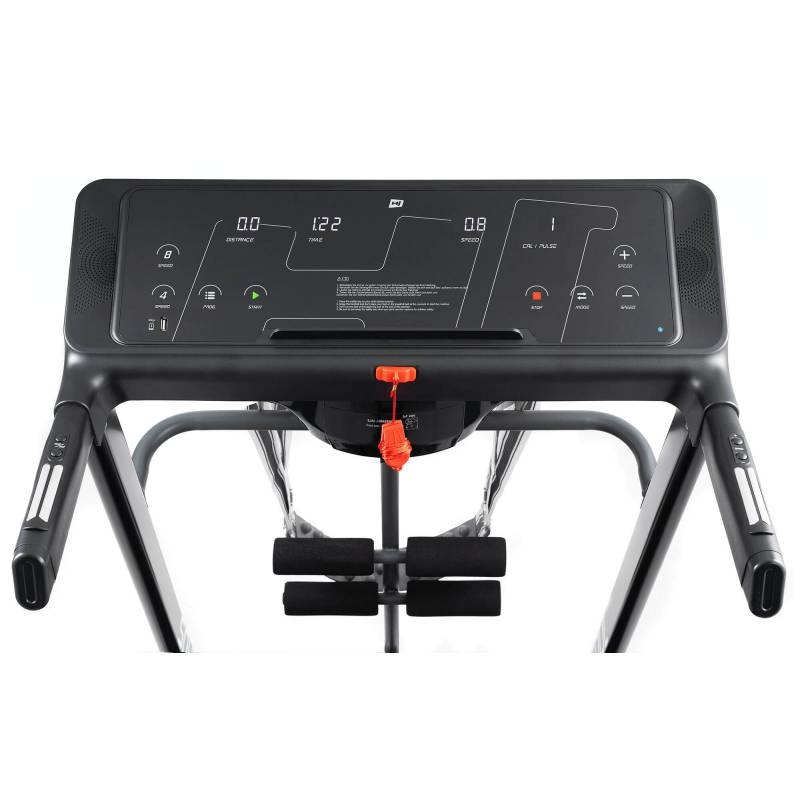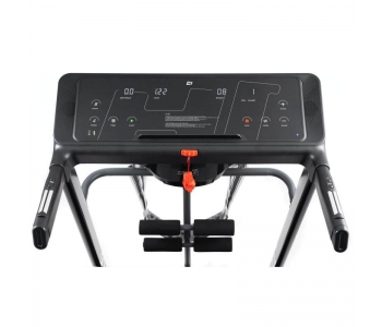 Тренажер має доволі широке бігове полотно розміром 120х40 см, яке дозволяє вільно маневрувати під час занять, міцним двигуном потужністю 1,5 к.с. із діапазоном швидкості 0,8-14 км/год. Зверніть увагу, що для цього пристрою максимальна вага користувача складає 130 кг.