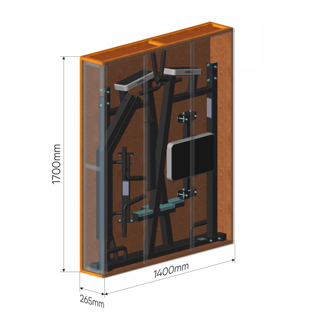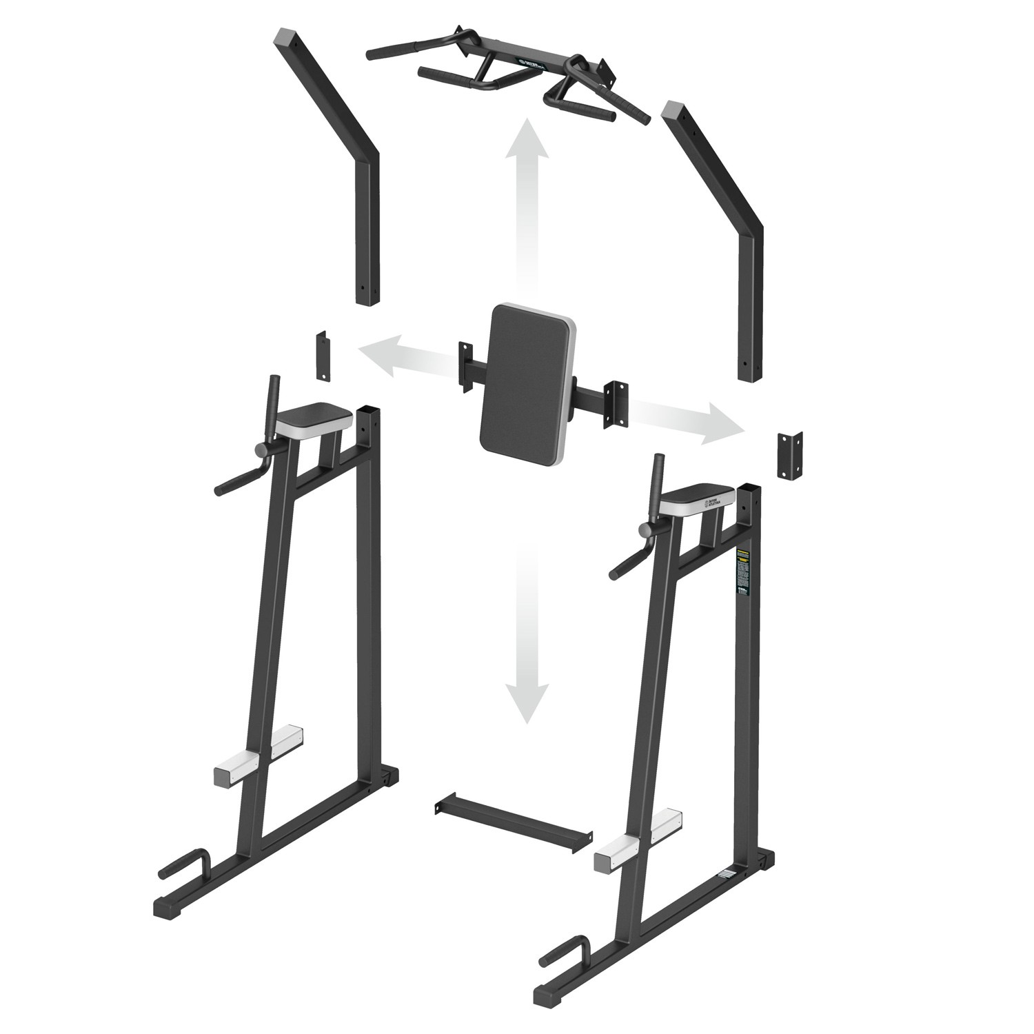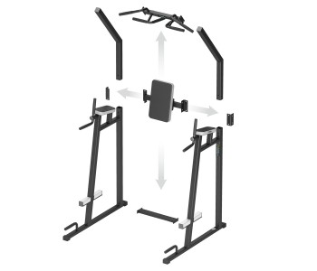 Сталева конструкція стійок має відмінну стійкість і міцність оскільки має основний профіль труби 60х60х2,5 мм і посилені металовироби. Саме тому, розрахована на інтенсивні навантаження, при цьому забезпечуючи максимальну безпеку і надійність під час тренування. Ручки для підтягування мають три зручних положення, які дозволяє ефективно опрацювати м'язи. Оббивка виготовляється з високоякісної штучної шкіри, наповнювачем служить двошаровий пінополіуретан: матеріал стійкий до усадки, не піддається деформації. Комбінований верстат покритий порошковою емаллю, яка наноситься способом електростатичного напилення.