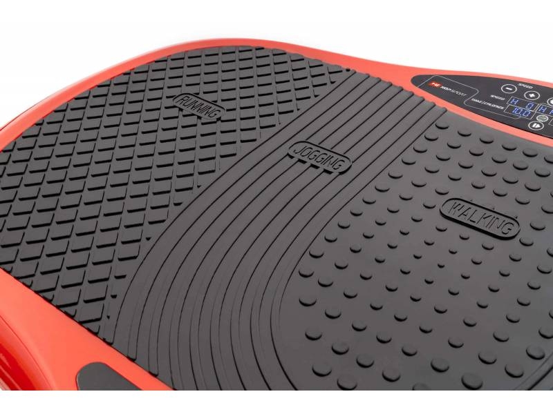 Простий у використанні вимірювач зі світлодіодним дисплеєм дозволяє контролювати ваші тренування. Він пропонує до 99 швидкісних рівнів, 8 готових тренувальних програм і призначену для користувача програму. Крім того, завдяки пульту дистанційного керування ви можете легко управляти платформою під час тренувань на ній. Це дуже допомагає, якщо ви хочете змінити інтенсивність тренування, не перериваючи її.