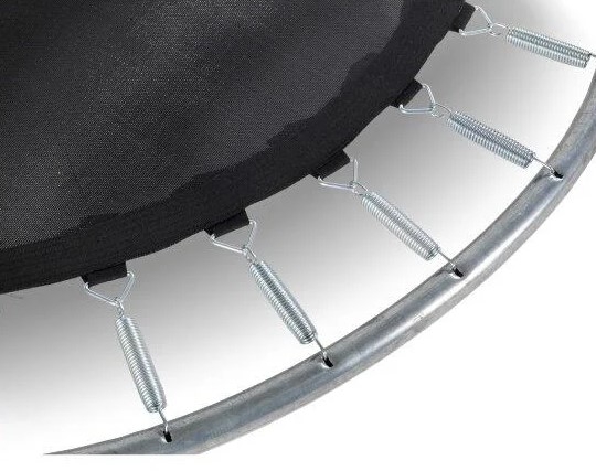 Високоякісна накладка повністю покриває оцинковані пружини і має спеціально розроблену систему безпеки для ніг, яка запобігає потраплянню ніг в пружини. Міцні пружини гарантують відмінну прижковую активність.