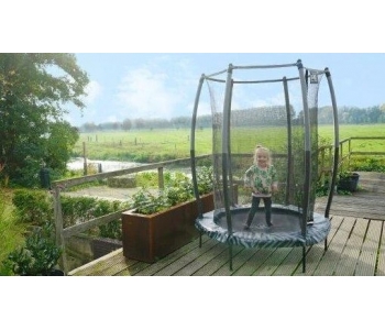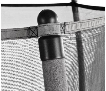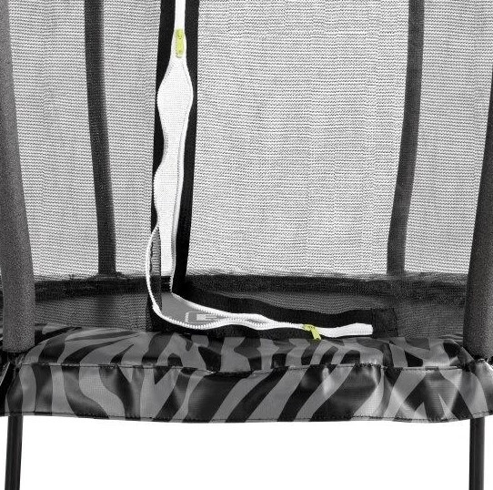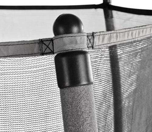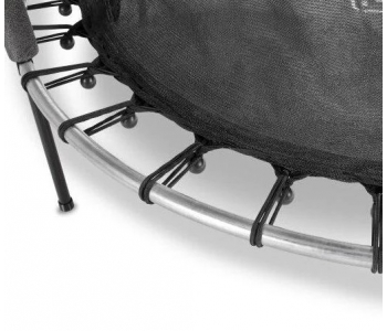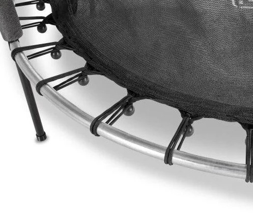 Замість пружин, які є у великих батутах, цей оснащений гумками для забезпечення більш плавного відскоку і м'якої посадки. А в разі невдалого стрибка захисна сітка не дозволить стрибаючим впасти на підлогу. Сетка надійно прикріплена до захисного покриття, щоб уникнути потрапляння рук і ніг між гумками.