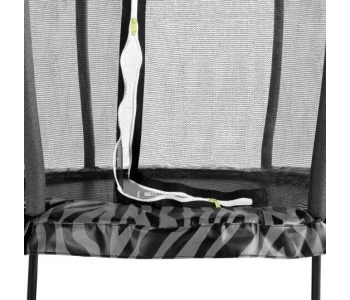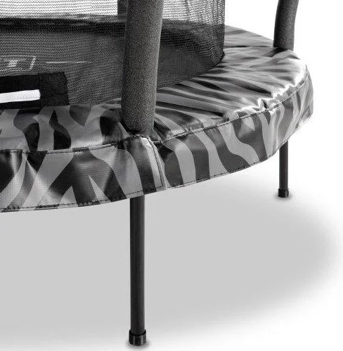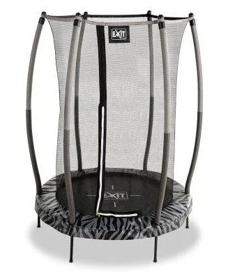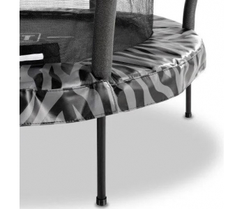 Батут дитячий EXIT Tiggy 140 см сірий - міні-батут для дітей від двох до шести років. Це компактний круглий батут з внутрішньою сіткою безпеки, який має захисний мат сіро-чорного кольору з леопардовим малюнком. Батут розроблений спеціально для малюків, він не високий, від землі його висота всього 34 см, щоб маленьким дітям було комфортно залазити на нього.