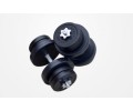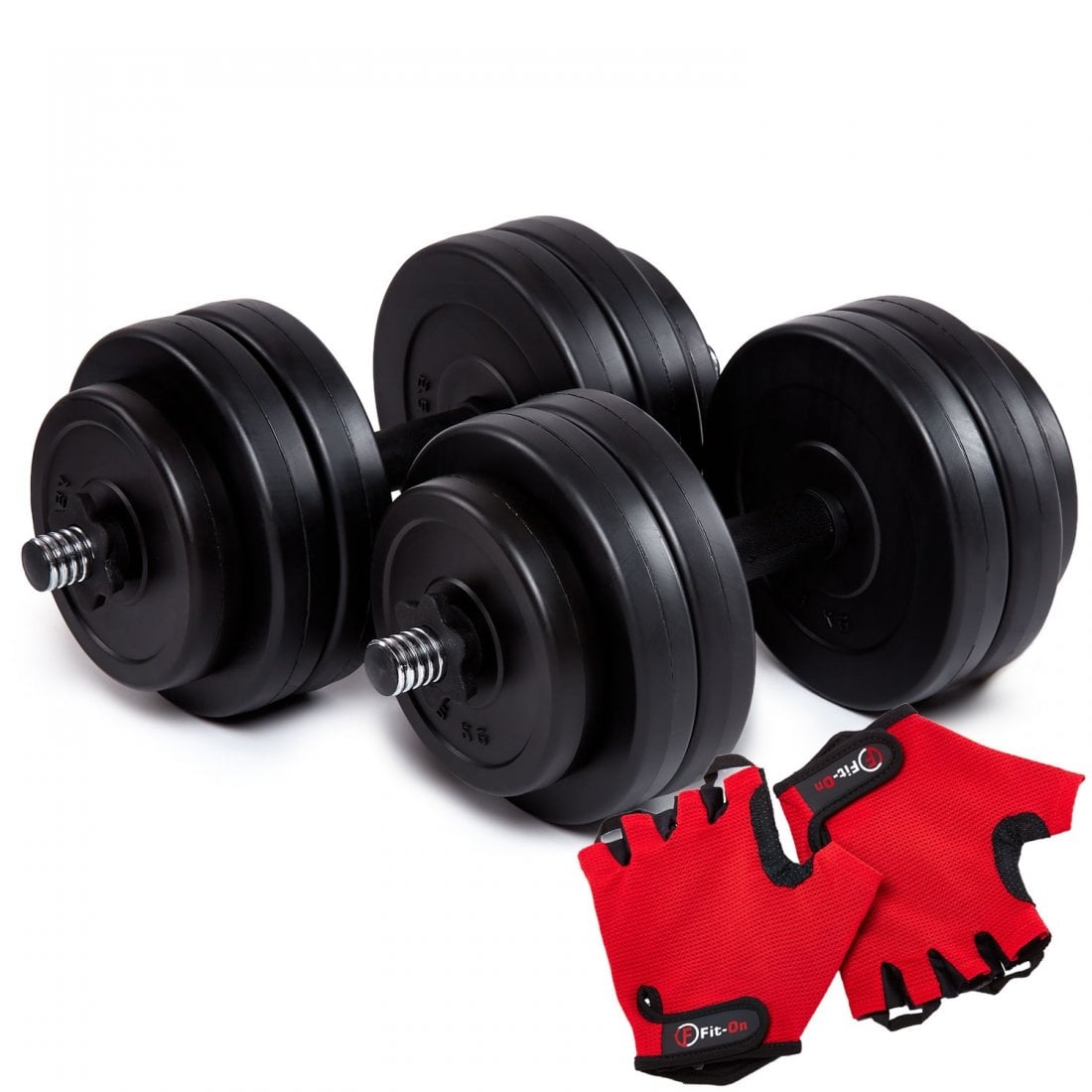 Диски покриті декількома шарами пластику, який забезпечує захист підлог, панелей, плиток при падінні гантелі. У набір входить також солідний прямий гриф з гвинтовими клемами, загальною довжиною 45 cм. Ключовими елементами грифа є гвинтові закінчення і клеми, рифлені рукоятки - ці елементи покращують кожне тренування.