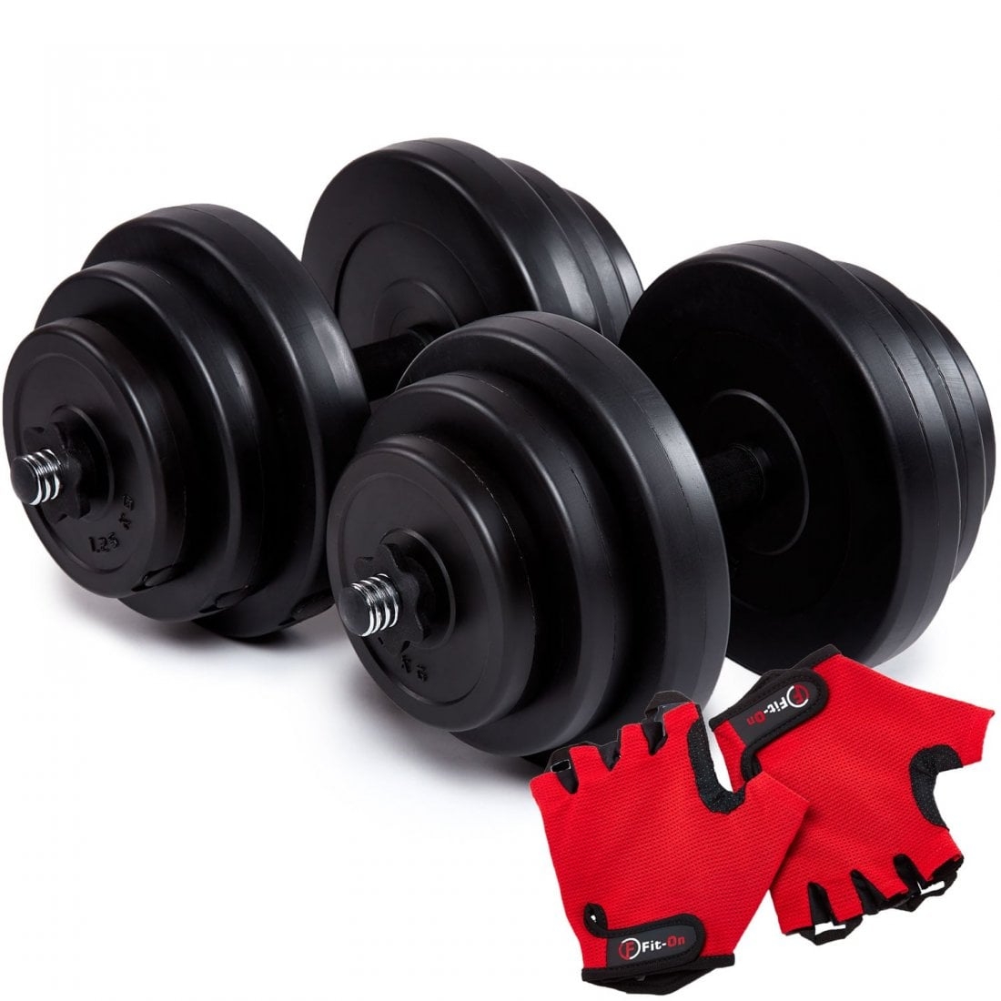 Диски покриті декількома шарами пластику, який забезпечує захист підлог, панелей, плиток при падінні гантелі. У набір входить також солідний прямий гриф з гвинтовими клемами, загальною довжиною 45 cм. Ключовими елементами грифа є гвинтові закінчення і клеми, рифлені рукоятки - ці елементи покращують кожне тренування.