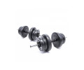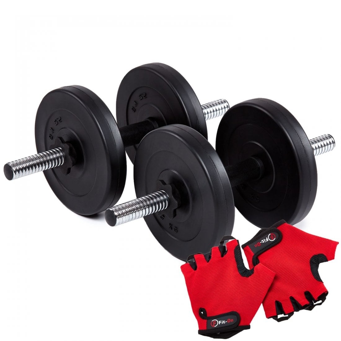 Диски покриті декількома шарами пластику, який забезпечує захист підлог, панелей, плиток при падінні гантелі. У набір входить також солідний прямий гриф з гвинтовими клемами, загальною довжиною 45 cм. Ключовими елементами грифа є гвинтові закінчення і клеми, рифлені рукоятки - ці елементи покращують кожне тренування.
