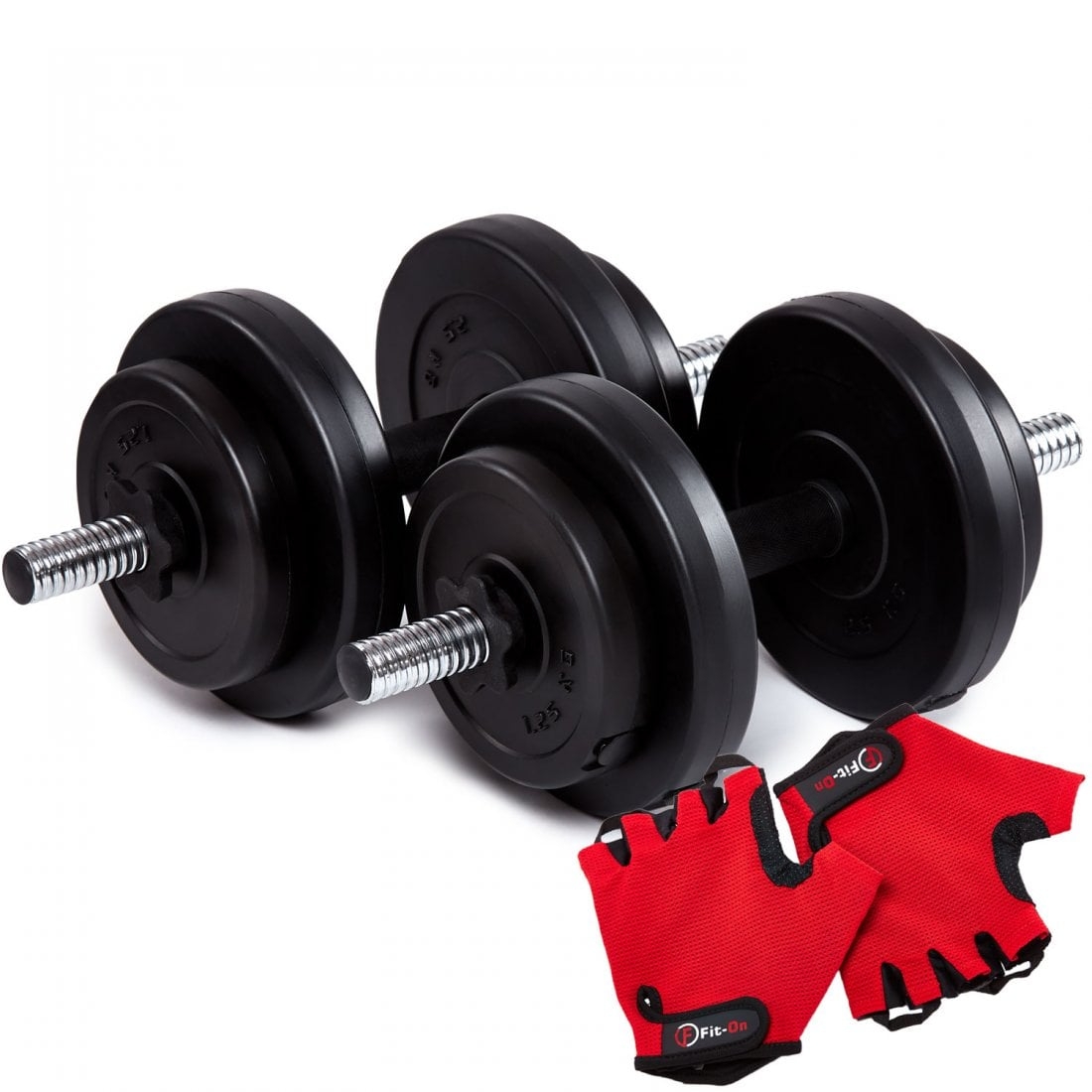 Диски покриті декількома шарами пластику, який забезпечує захист підлог, панелей, плиток при падінні гантелі. У набір входить також солідний прямий гриф з гвинтовими клемами, загальною довжиною 45 cм. Ключовими елементами грифа є гвинтові закінчення і клеми, рифлені рукоятки - ці елементи покращують кожне тренування.