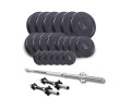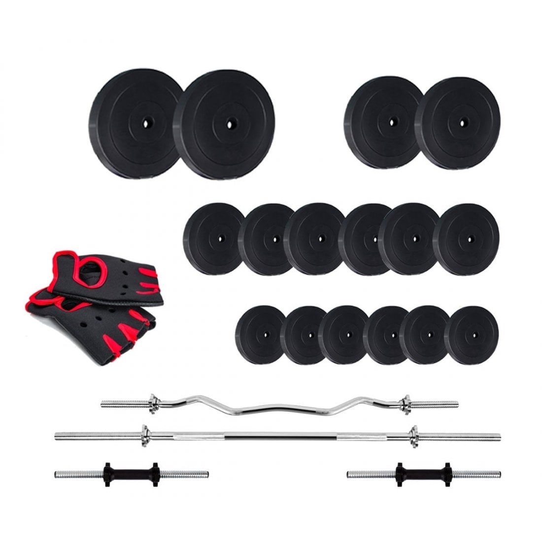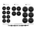 У комплект входить гриф прямої довжиною 180 см з діаметром 30 мм, гриф W-подібний, 2 гантельних грифа, рукавички і диски. Загальна вага становить 72,5 кг.