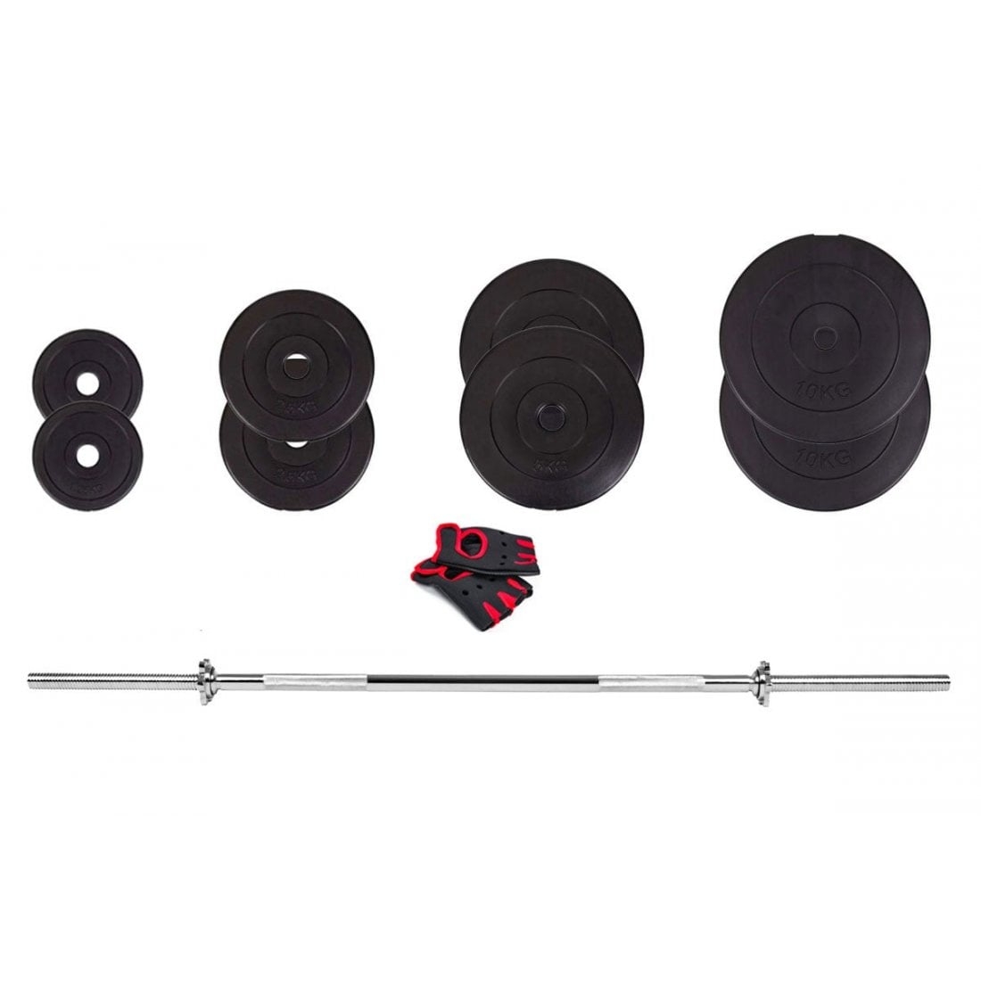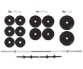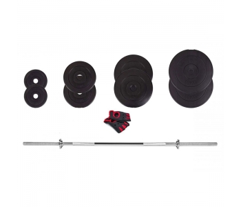 У комплект входить гриф прямої довжиною 180 см з діаметром 30 мм, рукавички і диски. Загальна вага становить 47,5 кг.