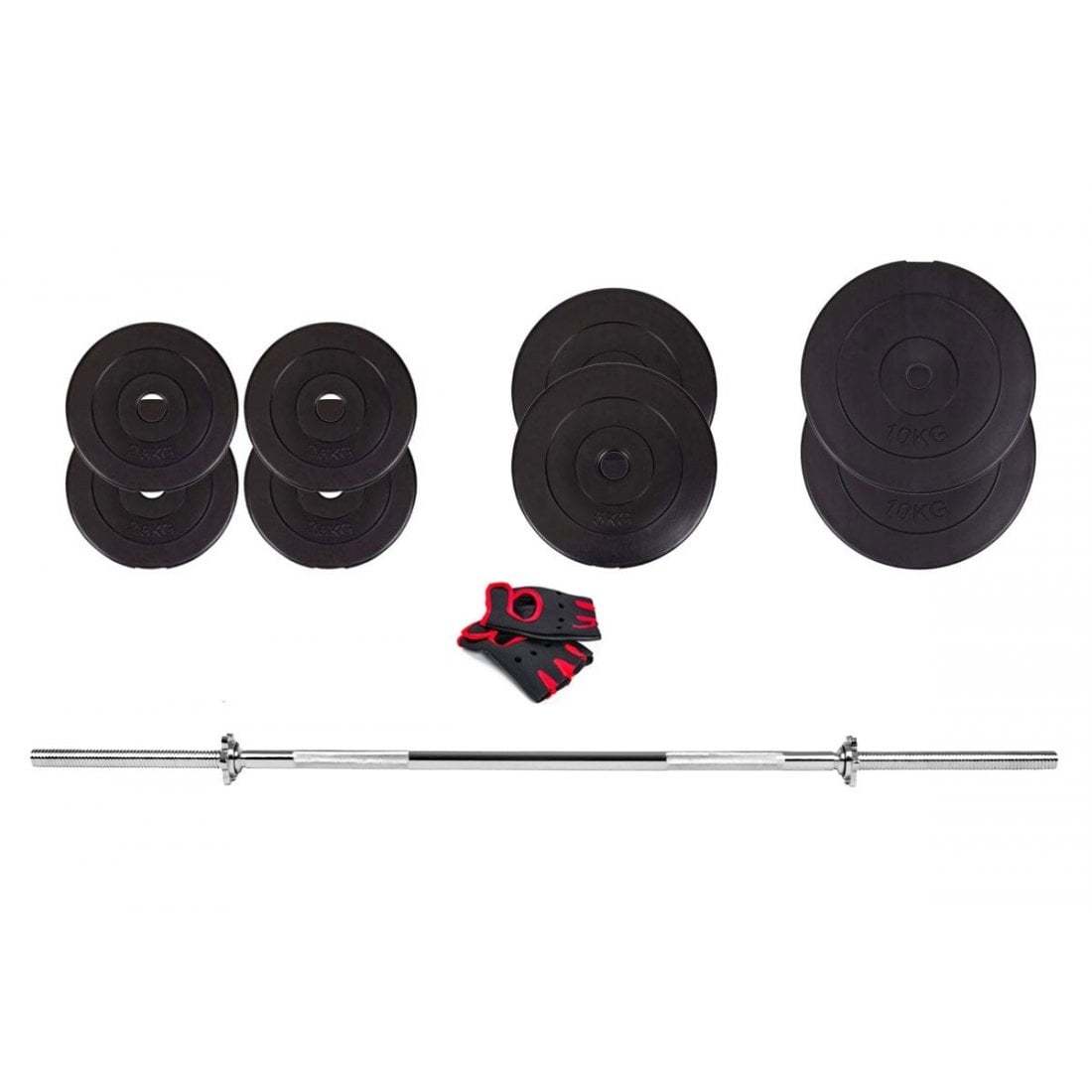 У комплект входить гриф прямої довжиною 180 см з діаметром 30 мм, рукавички і диски. Загальна вага становить 50 кг.