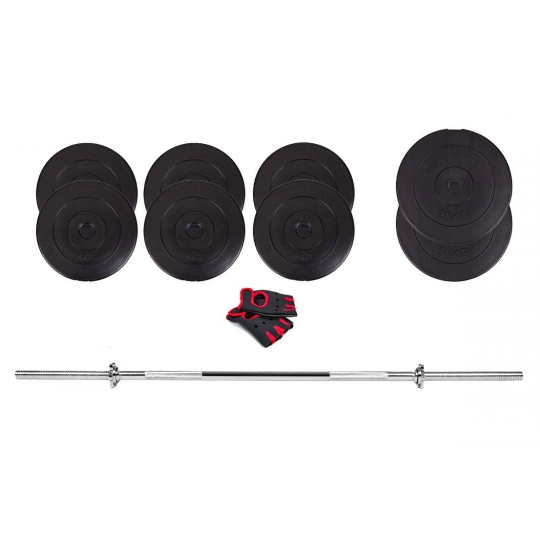 У комплект входить гриф прямою довжиною 180 см з діаметром 30 мм, рукавички та диски. Загальна вага складає 60 кг.