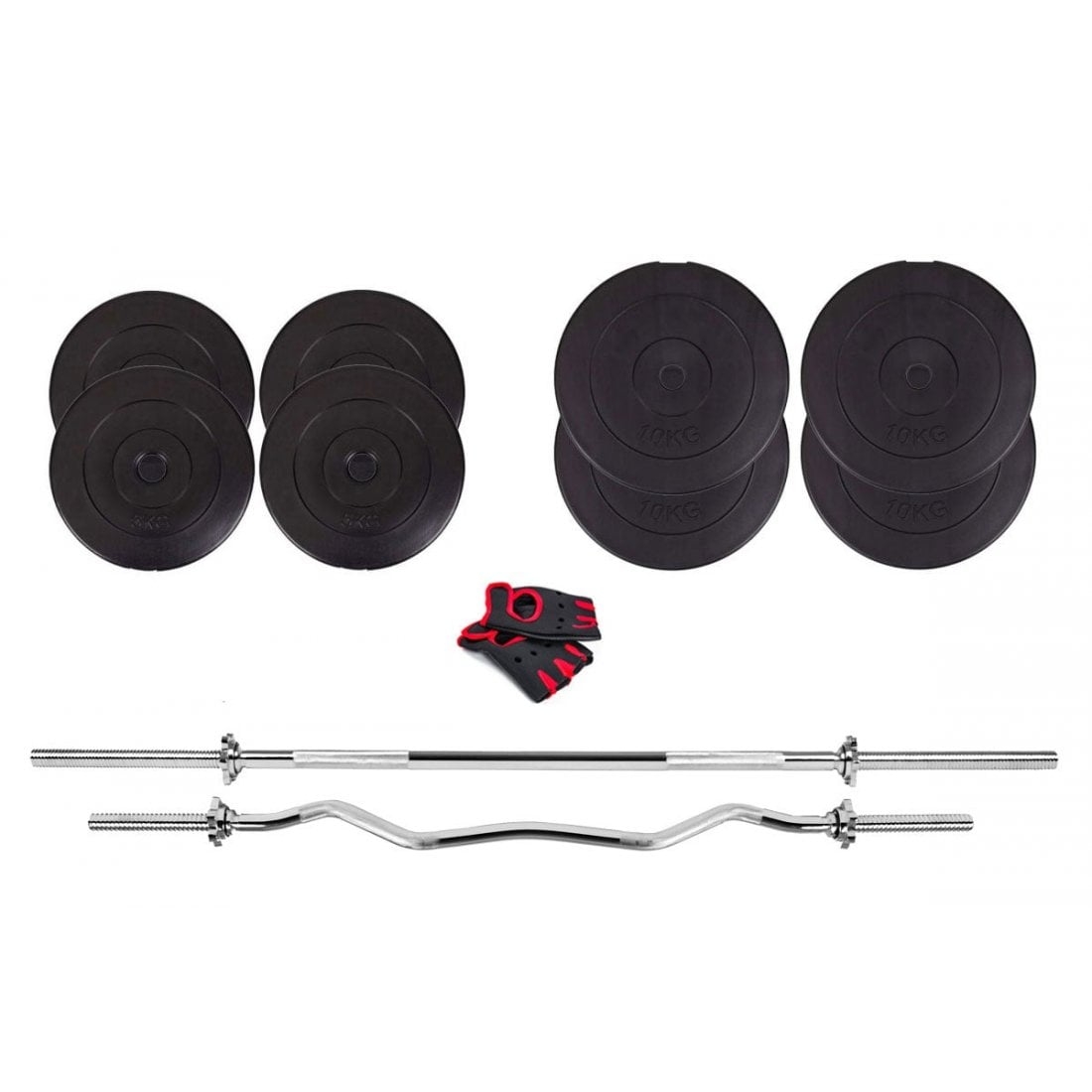 У комплект входить гриф прямої довжиною 180 см з діаметром 30 мм, гриф W-подібний, рукавички і диски. Загальна вага становить 78 кг.