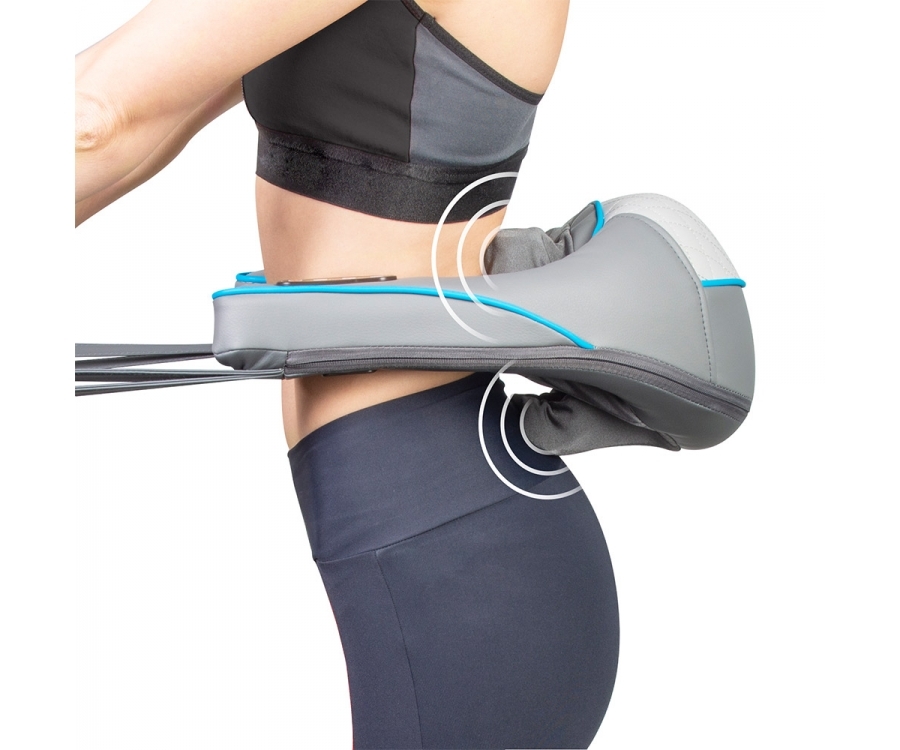 Масажну функцію виконують 6 каучукових роликів, інтенсивно впливають на м'язи і болючі точки, створюючи ефект загарбання з послідовним збільшенням сили масажу. Зручні ремені для рук дозволяють вибрати бажану зону масажу і відрегулювати необхідну інтенсивність.