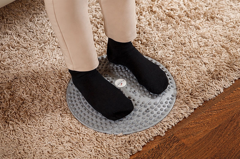 Станьте п'ятами на масажний диск і по черзі рухайте ногами вправо і вліво. Ця вправа підходить для працюючих людей, для людей середнього віку.