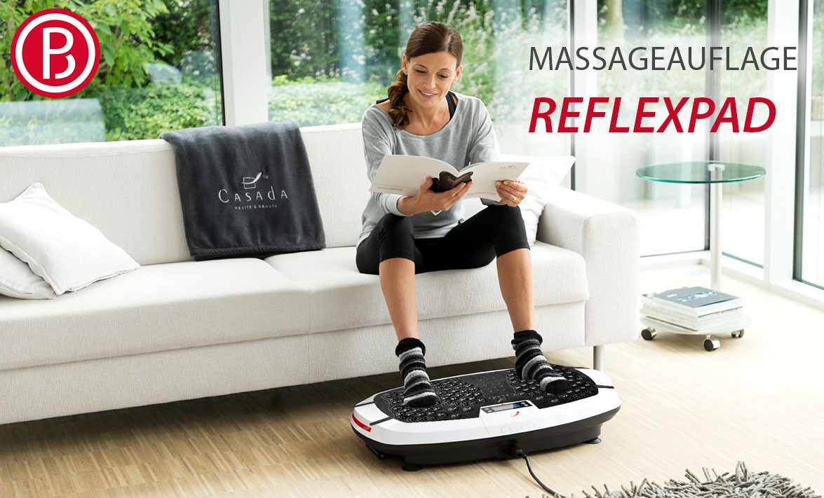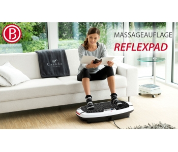 Як тільки ви почнете виконувати масаж, розмістіть накидку ReflexPad на прогумовану поверхню віброплатформи PowerBoard. Для більшої хватки накидку можна прикріпити до платформи за допомогою 4-х гумових стрічок, які розташовані так, що в поєднанні з вібраціями платформи здійснюється приємний і розслабляючий масаж ніг. Такий вид масажу знімає напругу м'язів і стимулює нервові закінчення, що приносить користь не тільки ногам і стопах, але і всьому тілу.