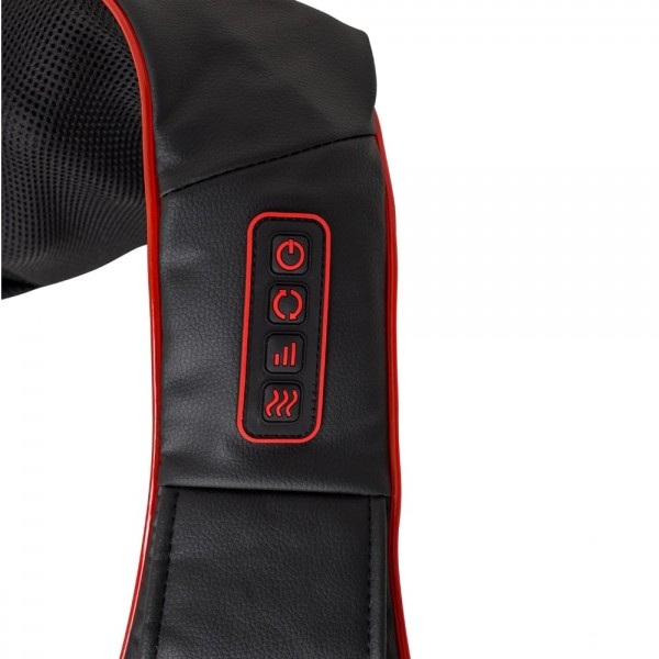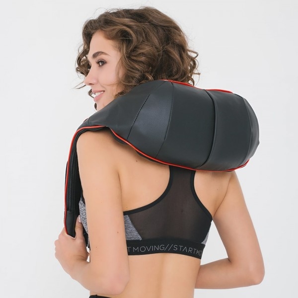 Універсальний апарат для масажу шиї, плечей, спини і ніг. Масажер має зручну форму у вигляді коміра і виконує роликовий масаж по типу шиацу з функцією інфрачервоного підігріву. З кожного боку розташовано по 4 масажних ролика, які одночасно розминають м'язи, знімають напругу і дарують відчуття расслабленності.