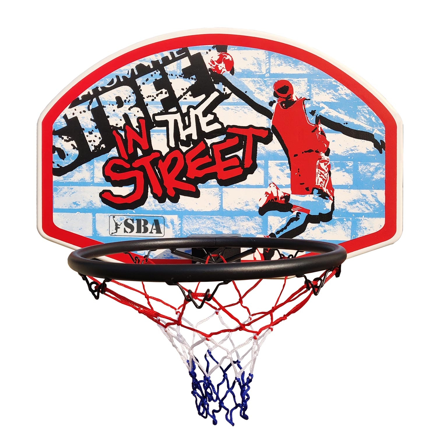 Баскетбольний щит SBA S881RB дитячий 66x46 см вільно кріпиться на двері або стіні, виготовлений з поліетилену високої щільності. Кільце з металопластику, завдяки його розмірам, можна повісити навіть в квартирі і, при нагоді, кидати в нього м'яч, Коротя таким чином час. Але особливо такий баскетбольний інвентар підійде для розваги ваших дітей і розвитку у них окоміру, сили, витривалості та принципів роботи в команді.