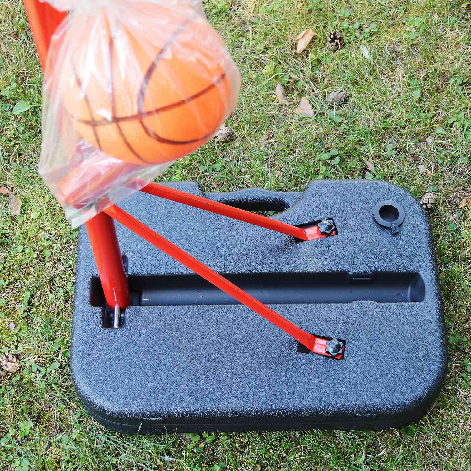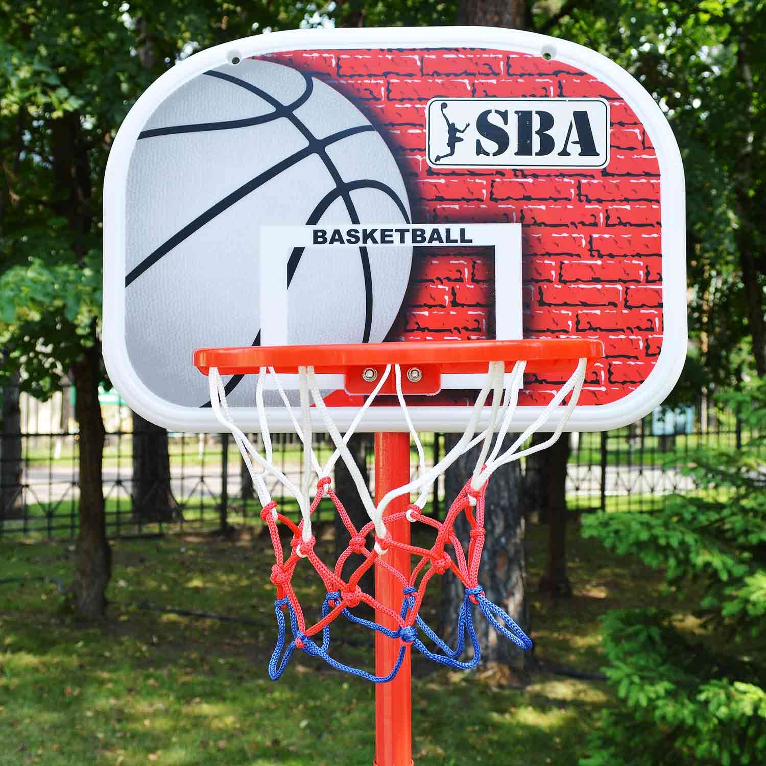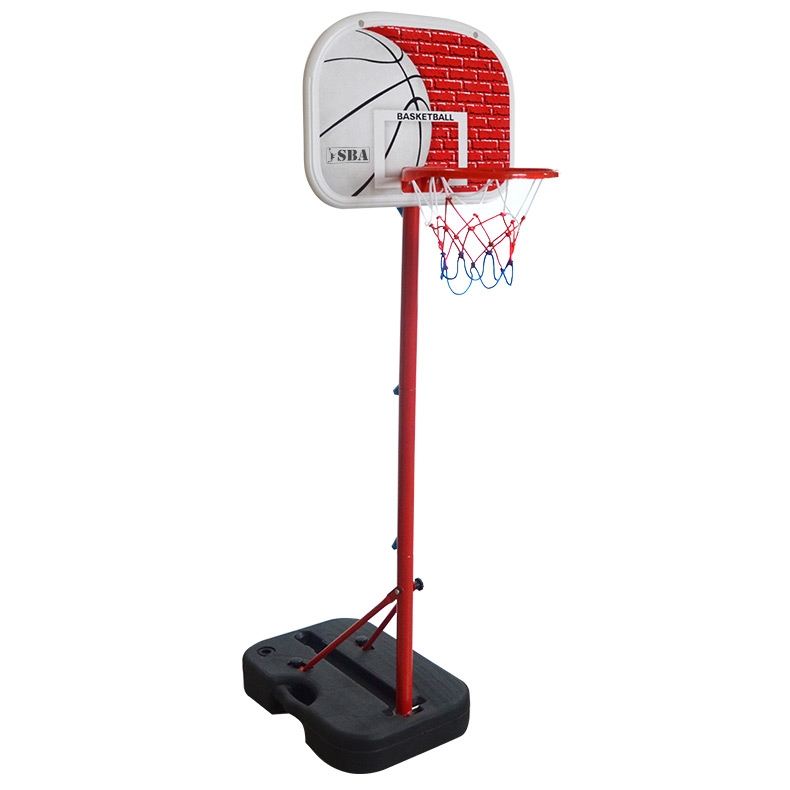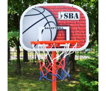 Баскетбольна стійка SBA S881G дитяча 41x33 см призначена для знайомства дітей з основними правилами і прийомами гри в баскетбол. Стійка виконана з металопластику, щит - з високоякісного пластику. На щиті стійки закріплено кільце. Стійка відповідає всім необхідним вимогам, що пред'являються до спортивного інвентарю цього класу. Стійка регулюється по висоті.