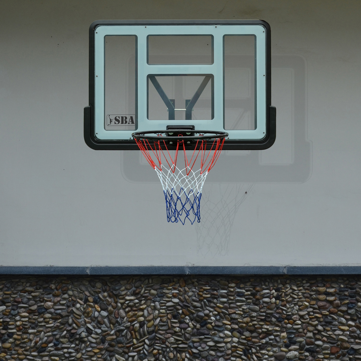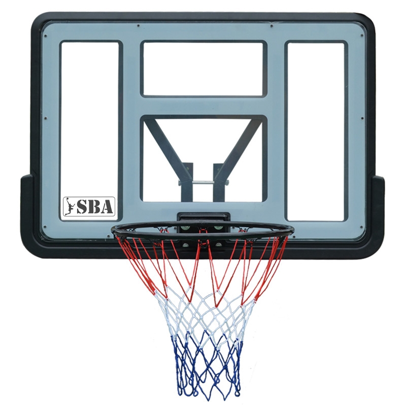 Баскетбольний щит SBA S007 110x75 см вільно кріпиться на двері або стіні, виготовлений із пластику зі сталевою рамою. Кільце, завдяки його розмірам, можна повісити навіть в квартирі і, при нагоді, кидати в нього м'яч, Коротя таким чином час. Але особливо такий баскетбольний інвентар підійде для розваги ваших дітей і розвитку у них окоміру, сили, витривалості та принципів роботи в команді.