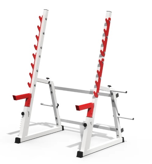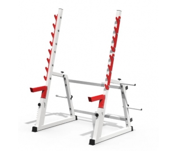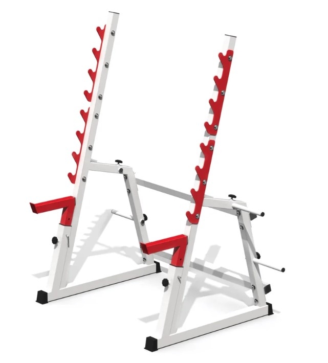 Стійки для присідання багатофункціональні. У конструкції закладена можливість виконання тренувань зі значними обтяженнями вагою до 400 кг і великим функціоналом. Такі стійки ставлять в офіси, облаштовуючи невеликі спортзали, адже тут можна повісити ззаду запасні млинці, швидко міняти ваги коли займаються по троє чоловік. Тут можна виконувати і присідання зі штангою, і жим лежачи, і жим сидячи, а переставляти висоту під штангу немає необхідності, так як гаки заготовлені на все висоти. Встановлені страхові упори надійно можуть підхопити штангу під час одиночних тренувань. Конструкція страхових упорів така, що при необхідності, їх можна зняти і вони абсолютно не будуть заважати.