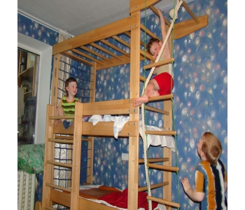 Двох'ярусне ліжко Сон-спорт (бук) високої якості успішно поєднана зі спортивним комплексом.