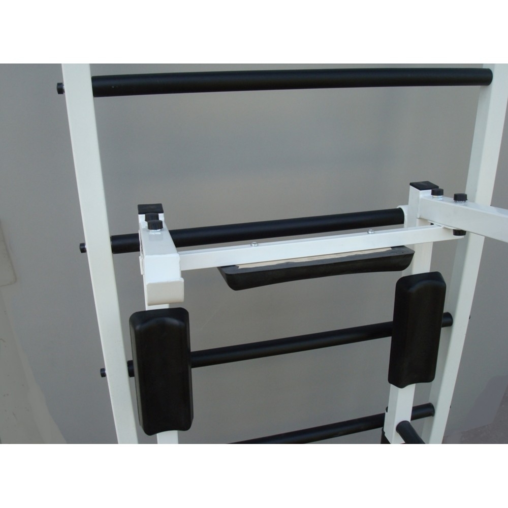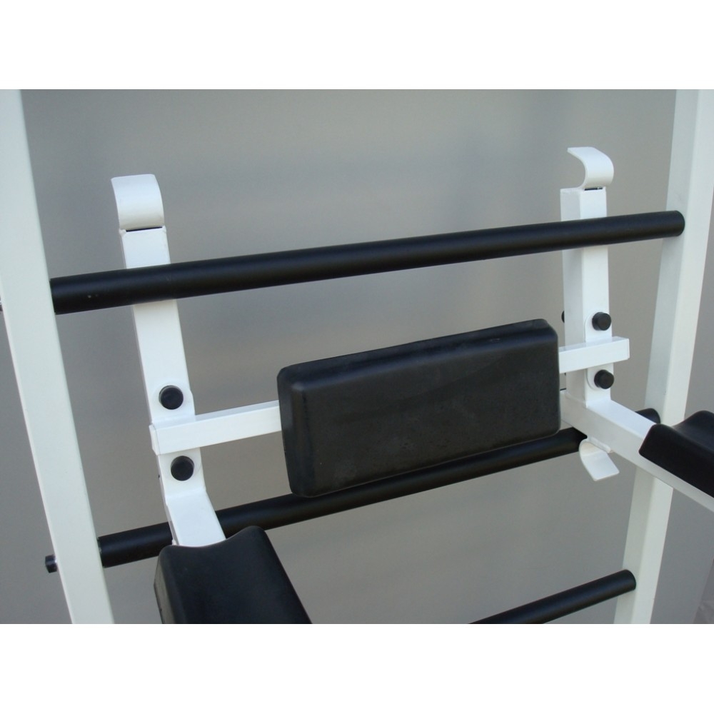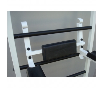3. Знімні бруси з такими ж зручними ручками, як і на турніку. Для найбільшого комфорту спортсменів в них передбачена м'яка спинка і підлокітники. Бруси також виконують функцію підставки під штангу.
