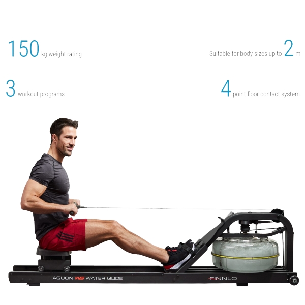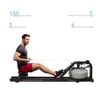 Ви любите перебувати на воді і шукаєте висококласний тренажер для веслування, який дозволив би вам тренуватися з максимальною реалістичністю будинку? Це те, що ви шукали. Гребний тренажер FINNLO Aquon Water Glide створений для ідеальних тренувань в домашніх умовах. Ви будете дійсно вражені міцною рамою, розрахованої на вагу до 150 кг. Тренажер укомплектований міцними шарикоподшипниками на рейках вищої якості, які гарантують дуже плавний хід. Приведіть себе в ідеальну форму з новим Aquon Water Glide, який має водяне опір. Почніть з тренування всього тіла, яка виглядає так реалістично, як ніби ви насправді веслування на воді. Ви дійсно потієте, використовуючи силу води! Вам не потрібно виїжджати кожен раз на річку, щоб виконати веслову тренування. Унікальність гребних тренувань в тому, що вони задіє всі основні групи м'язів вашого тіла, покращують вашу координацію і знімають стрес!