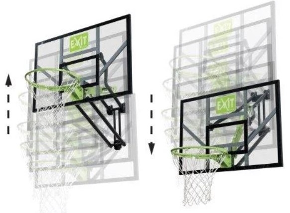 Баскетбольний щит Galaxy Exit настінний регульований з кільцем і сіткою, на металевому каркасі, виконаний з міцного матеріалу - полікарбонату. Цей баскетбольний щит можна легко закріпити на стіні, що робить його придатним для для будь-яких приміщень або вуличної спортивного майданчика. Баскетбольний щит регулюється по висоті в п'яти положеннях (230 - 245 - 260 - 285 - 305 см), тому він ідеально зручний для використання дорослими і дітьми. Баскетбольні системи EXIT Toys - надійні, виготовлені з високоякісних матеріалів, що гарантує тривалий термін служби.Треніруйте свою швидкість, спритність і вміння в грі в баскетбол з якісним обладнанням для спорту і дозвілля від Exit - Нідерланди.