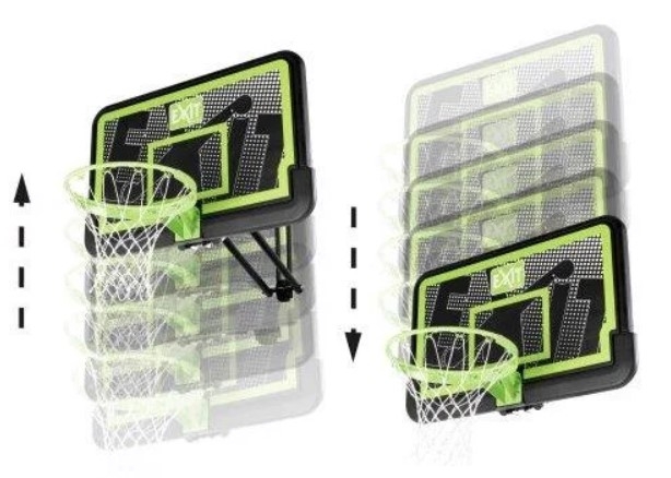 Баскетбольний щит Galaxy Exit настінний регульований чорний з кільцем і сіткою, на металевому каркасі, виконаний з міцного матеріалу - полікарбонату. Цей баскетбольний щит можна легко закріпити на стіні, що робить його придатним для для будь-яких приміщень або вуличної спортивного майданчика. Баскетбольний щит регулюється по висоті в п'яти положеннях (230 - 245 - 260 - 285 - 305 см), тому він ідеально зручний для використання дорослими і дітьми. Баскетбольні системи EXIT Toys - надійні, виготовлені з високоякісних матеріалів, що гарантує тривалий термін служби.Треніруйте свою швидкість, спритність і вміння в грі в баскетбол з якісним обладнанням для спорту і дозвілля від Exit - Нідерланди.