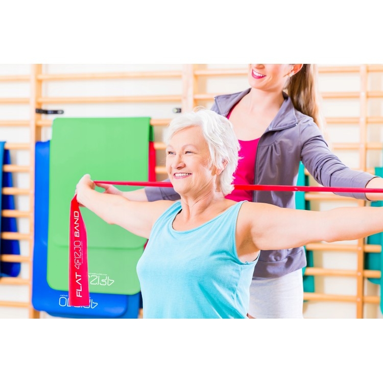 Матеріал вироби 100% латекс, що робить його стійким до розриву і пошкоджень, навіть під час інтенсивних вправ. Стрічки Flat Band мають розмір 200 х 15 см і доступні з різною силою опору. Представлена модель має легке опір в діапазоні від 5 до 8 кг.