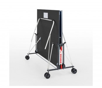 Стіл має зручну систему складання, що дозволяє швидко та легко підготувати його до гри, обладнаний надійною системою блокування стільниць. Для зручності переміщення тенісний стіл оснащений чотирма колесами ∅ 125 мм, одна сторона – маневрова. Стільниця ігрової поверхні виготовлена з 19-ти мм спеціального високощільного ДСП класичного синього кольору. Рама виготовлена із сталевих труб ∅ 25 мм із якісним порошковим покриттям. Вбудована сітка, що не вимагає демонтажу при складанні. Передбачено можливість одиночної гри.
