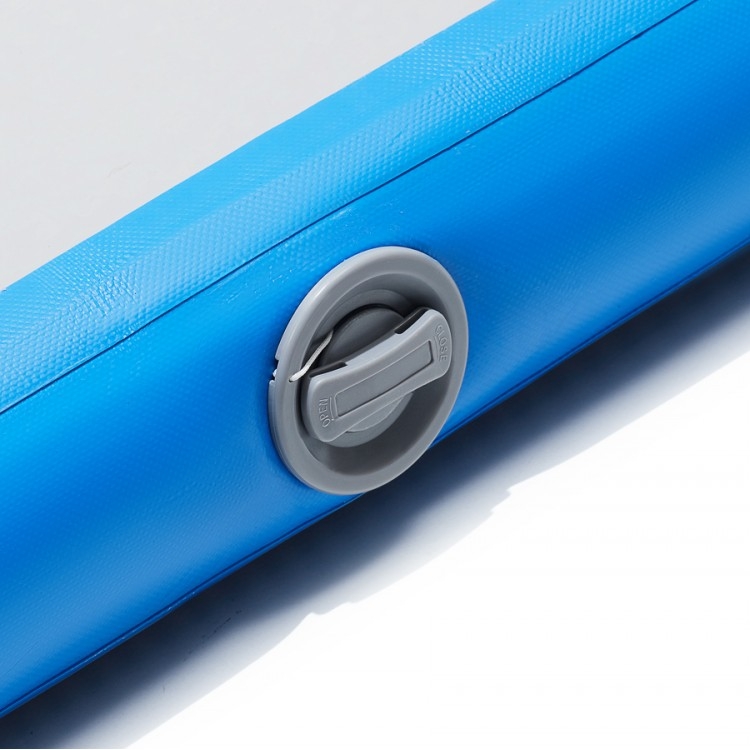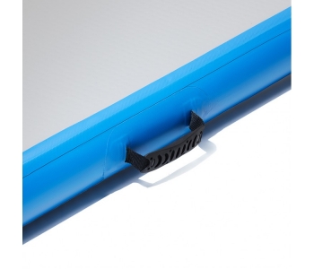 Накачується мат за допомогою електричного компресора, який входить в комплект поставки. Завдяки спеціально посиленому матеріалу ПВХ з якого виготовлений Air Track Mat, він надзвичайно стійкий до перевантажень. Для зручної і легкої транспортування по краях розташовані ручки. Повітряний клапан оснащений силіконовою вставкою, що робить спортивний мат водонепроникним, а отже його можна застосовувати на воді.