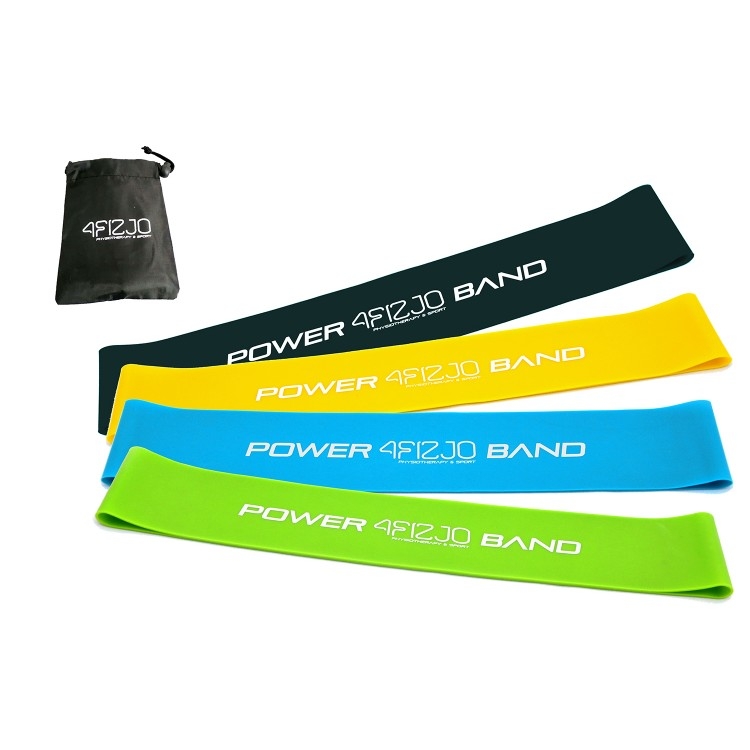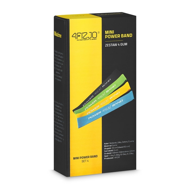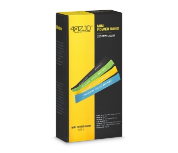 Міні петлі 4FIZJO виготовлені з 100% латексу, що робить їх стійкими до розриву і пошкоджень, навіть під час інтенсивних вправ. Залежно від сили опору, гумки відрізняються за кольором. Представлений набір складається з 4 еспандерів з різним навантаженням в діапазоні від 1 до 20 кг. Максимальне навантаження досягається при розтягуванні в два рази.