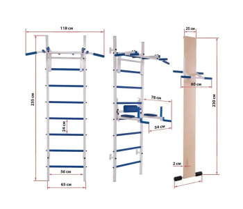🏋️♂️ Комплексний тренажер: шведські сходи, турнік, бруси, дошка-профілактор, лавка під нахилом.