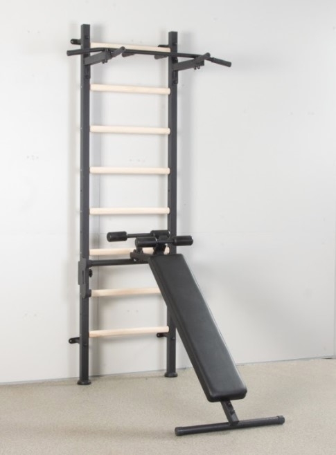 Шведська стінка quot; Master Woodquot; посилена з дерев'яними перекладинами, жорстко закріпленим турніком, знімними брусами, знімною лавкою для преса. Спирається навісних елементів відбувається на кріплення, встановлені на металевих стійках, що дозволяє займатися з вагою штанги до 200 кг, вага що займається до 120 кг. Висота шведської стінки 2400 мм, ширина 700 мм. Кріпиться до стіни. Кольори: чорний /білий
