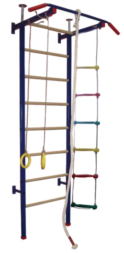 У комплектацію входить дитячий набір: гімнастичні кільця, мотузкові сходи і канат.