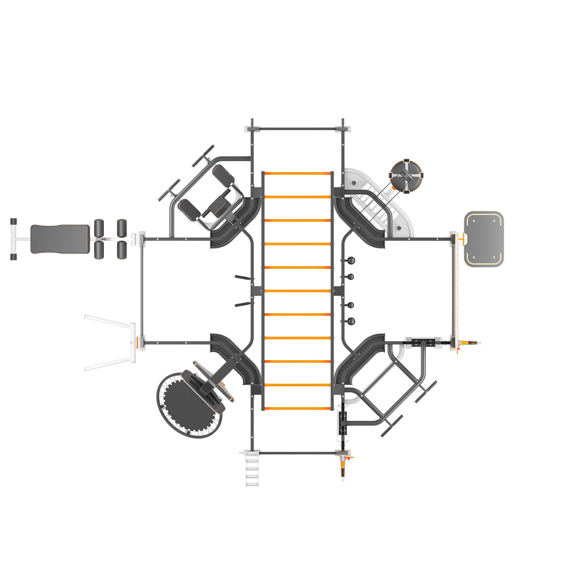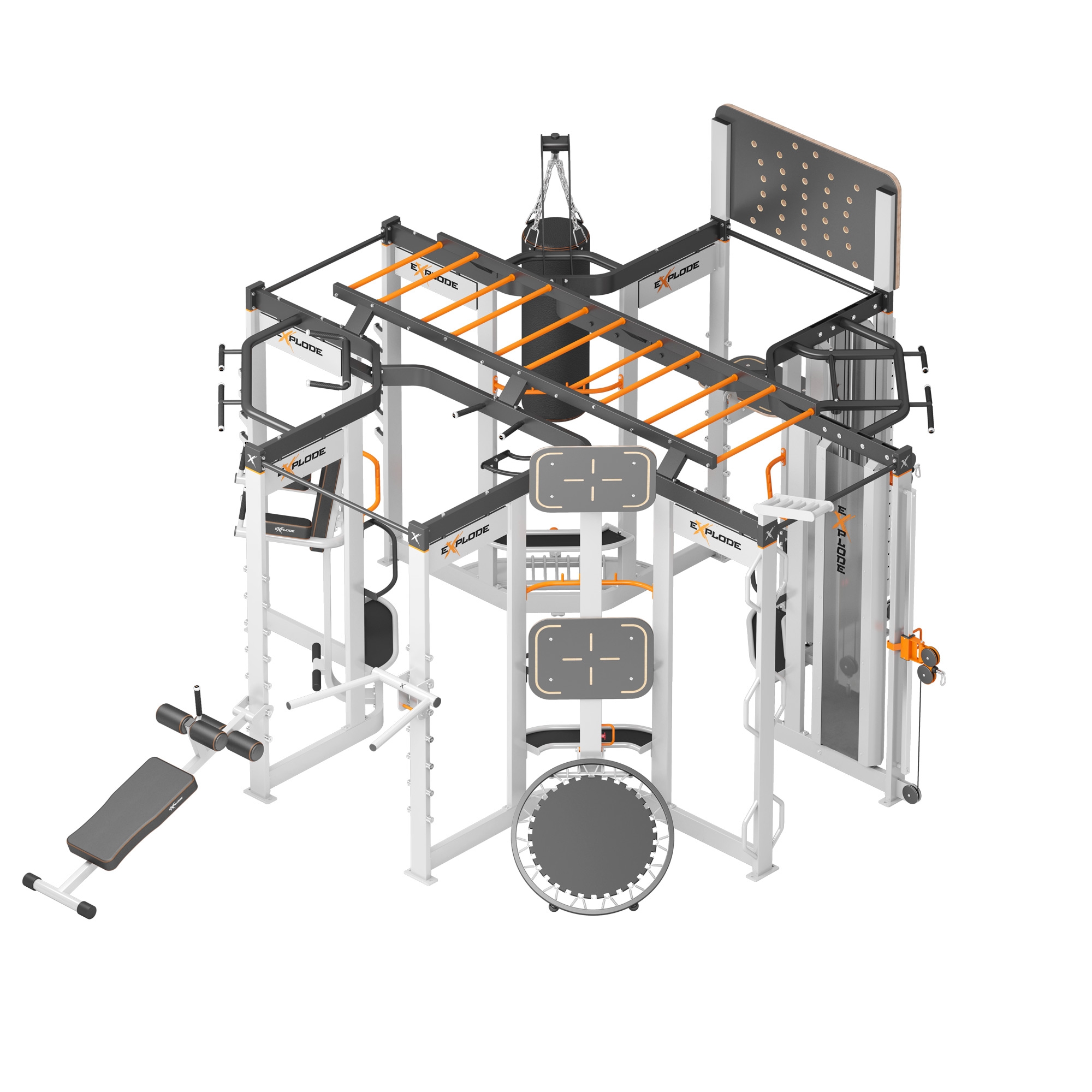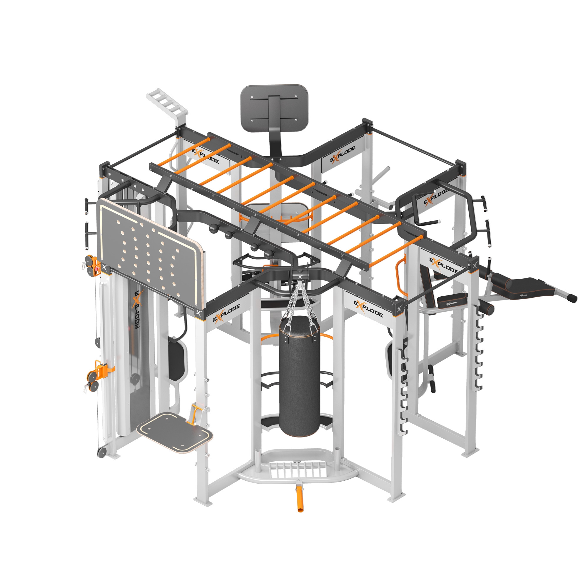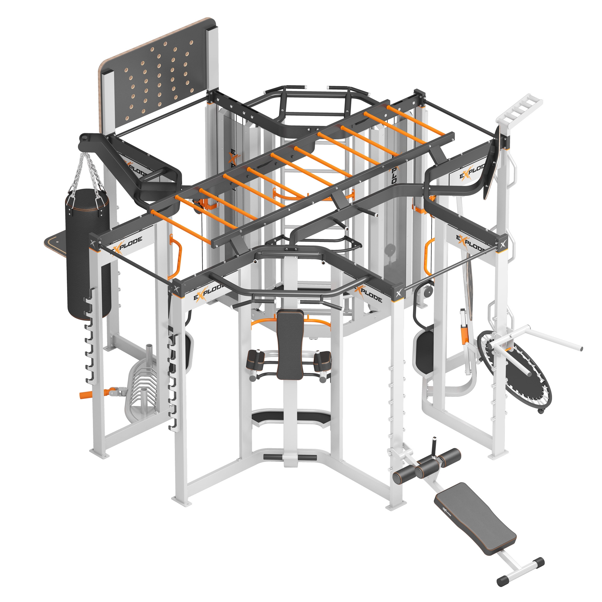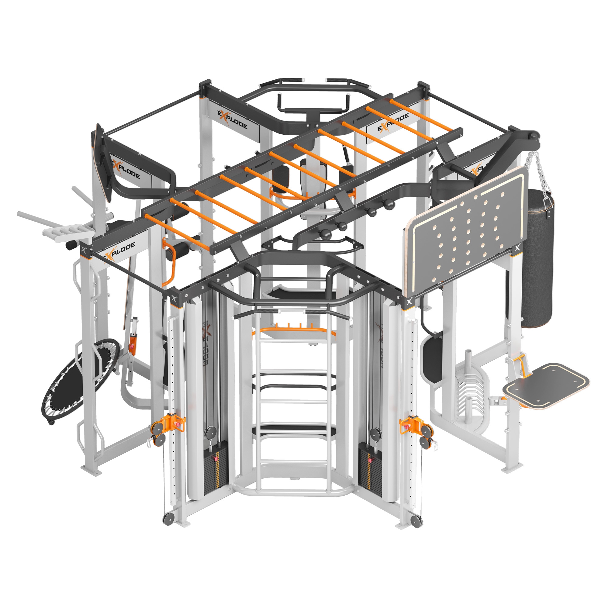 Мультистанция для функціонального тренінгу Explode KF-S5 - це комплекс, який розроблений для занять функціональним тренінгом. Станція дозволяє проводити високоефективні групові або індивідуальні тренування до 30 осіб одночасно, оскільки має 37 спортивних модулів (23 - для вправ, 14 - для обладнання).