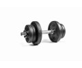Гантель фіксується овальної торцювання шайбою, на яку нанесено логотип і вага гантелі.