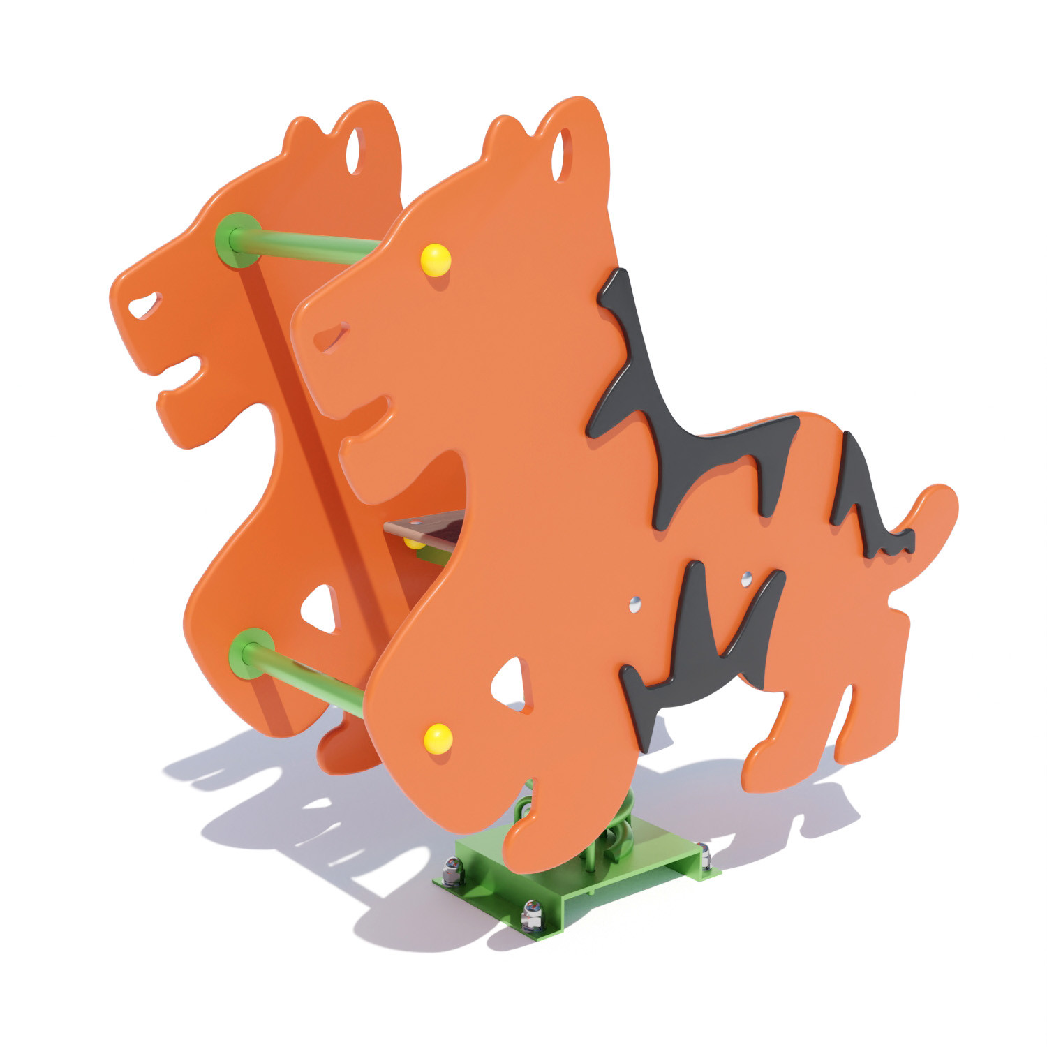 Гойдалка ldquo; Тігрrdquo; ndash; призначена для дітей віком від 3 до 7 років. Має форму машинки. На дитячому майданчику качалка приваблює дітей своїм яскравим дизайном. Гойдалка призначена як для приватних будинків так і для дитячих майданчиків.
