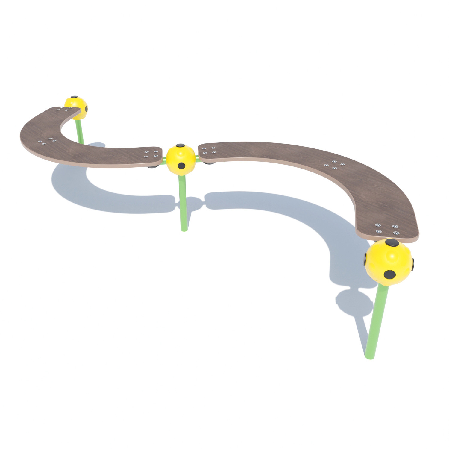 Конструкція являє собою вигнутий дерев'яний брус, який розташований на шістьох металевих стійках.