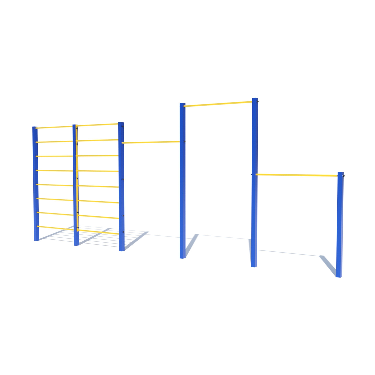 Конструкція являє собою потрійний турнік з чотирьох металевих стійок з квадратним поперечним перерізом.