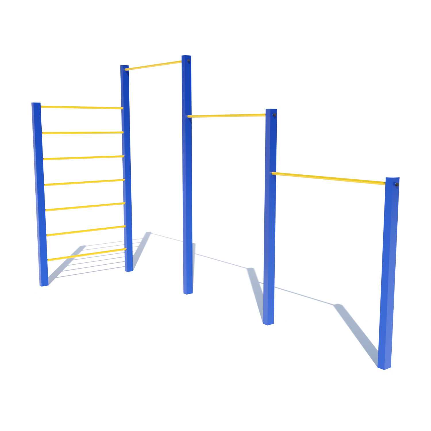 Конструкція являє собою потрійний турнік з чотирьох металевих стійок з квадратним поперечним перерізом.