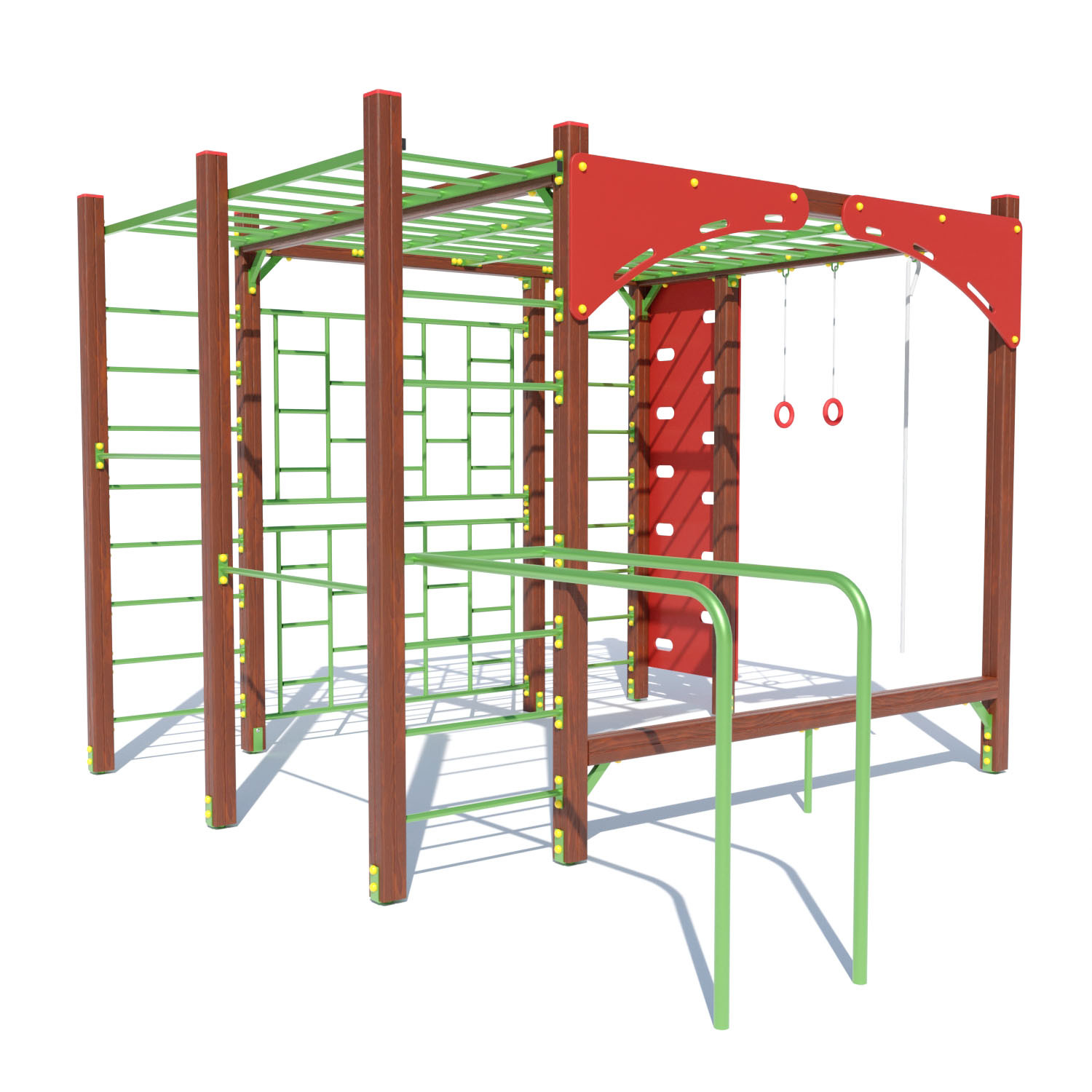 Гімнастичний комплекс ldquo; Спортrdquo; DIO651 і дитина, разом з Вами вже з дитинства буде підкорювати вершини. Комплекс наділений безліччю елементів, які не дадуть занудьгувати нікому: шведська стінка і два види лазів, по всьому верху розташовані рукоходи, також є гімнастичні кільця, канат, бруси і турніки двох різних рівнів. Саме таке розмаїття гімнастичних елементів робить комплекс універсальним і відповідним абсолютно для всієї родини.