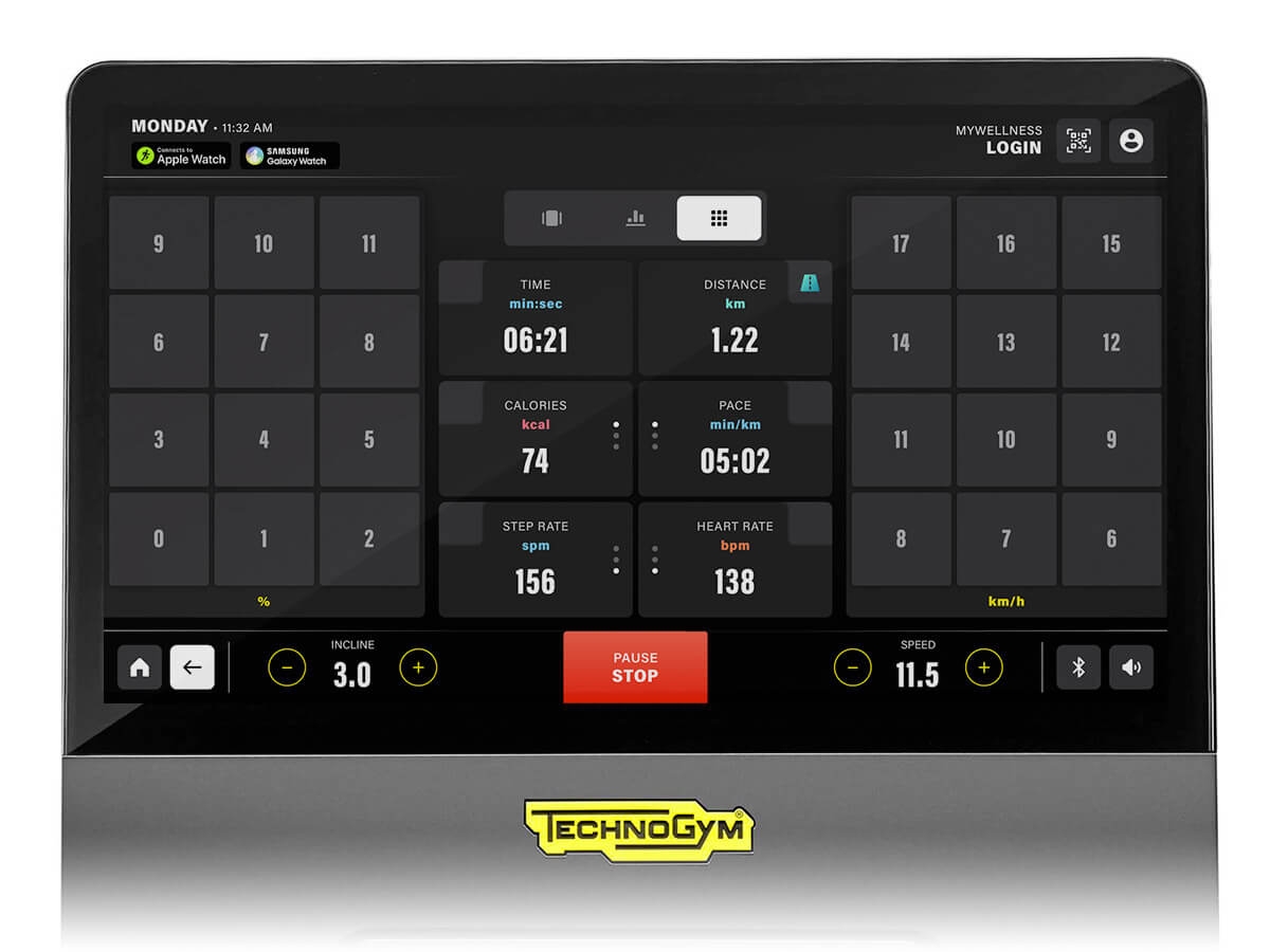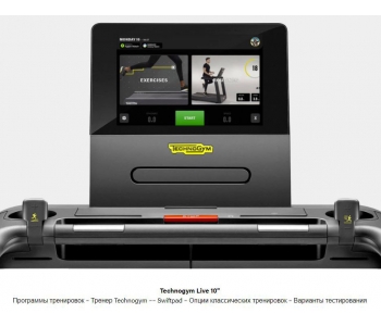 Excite Live Run пристосовується до вас, а не навпаки. Нова інноваційна конструкція забезпечує велику стійкість і на 13% більше простору для бігу і вправ. М'яке покриття Optimal Stride адаптується до вашого бігу, посилюючи ваші відчуття. Насолоджуйтесь свободою рухів завдяки найширшому беговому полотну, що переміщається плавно і без ривків. Все в Excite Live Run - легко. Змінюйте швидкість і нахил на ходу за допомогою функції Fast Track Controls або за допомогою панелі Swiftpad на консолі, не пропускаючи ні секунди. Безперервний зелене світло означає, що можна безпечно встати на тренажер. Якщо зелений індикатор блимає, це означає, що бігова доріжка потребує обслуговування, хоча і може ще використовуватися. Technogym Live - це новий цифровий призначений для користувача інтерфейс, який розширює можливості консолі Excite. Розроблений для того, щоб надихати вас на заняття фізичними вправами і зробити їх частиною свого життя, він допомагає досягти результатів, мотивуючи і розважаючи.
