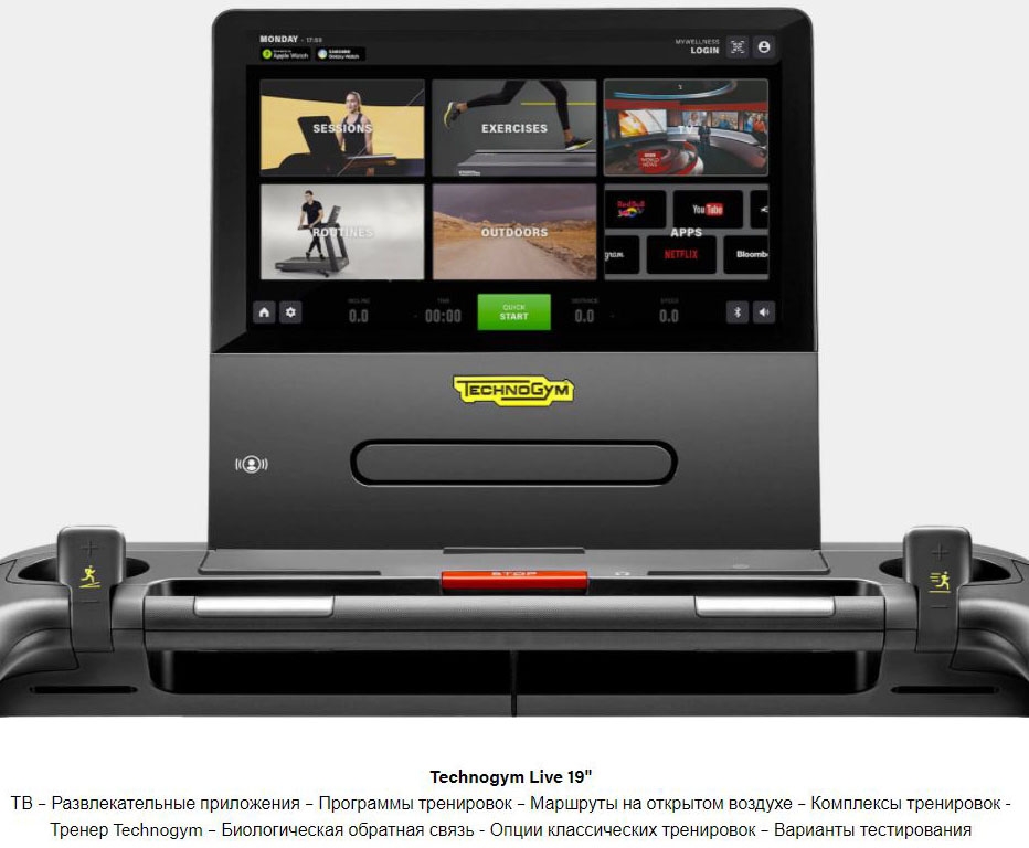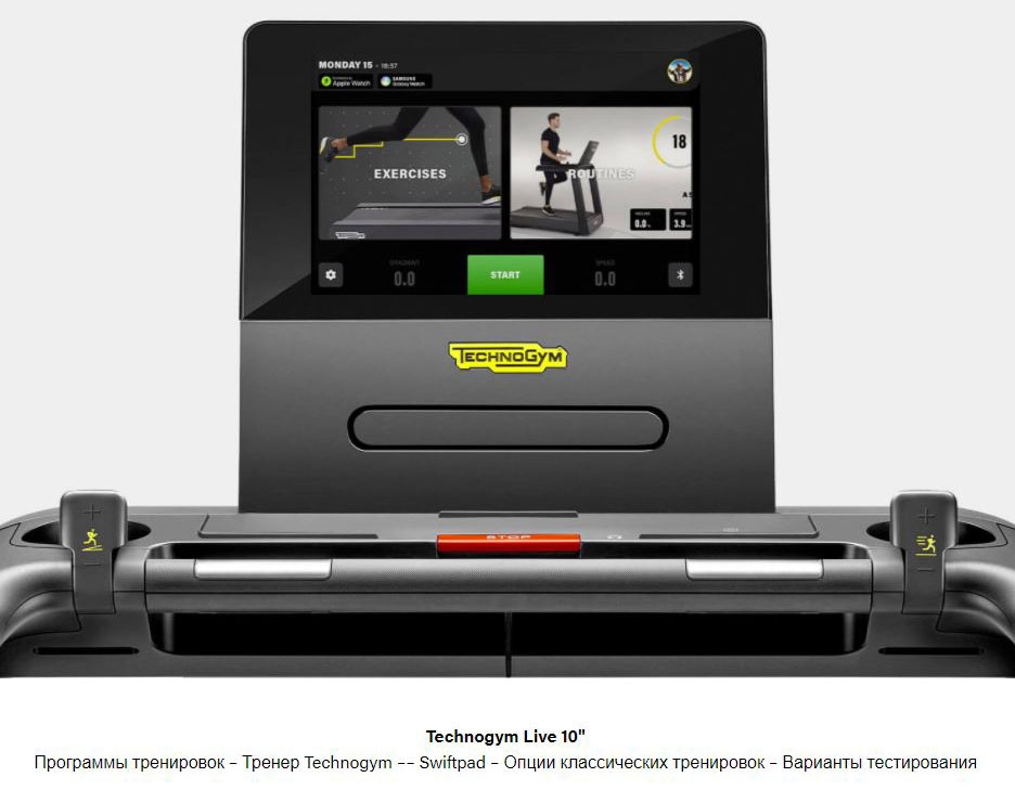 Консолі Excite оснащені новим цифровим інтерфейсом Technogym Live, створеним, щоб надихати і спонукати людей робити вправи повсякденному частиною свого життя. Від тренувань до розваг, він допомагає домагатися результатів захоплююче і мотівірующе. Для тих, кому потрібна мотивація, Technogym Session пропонує шість індивідуальних тренувань, орієнтованих на досягнення мети, з віртуальним тренером. Крім того, Technogym Routine пропонує різні вправи із заданою інтенсивністю і покрокові інструкції. 19-дюймова консоль пропонує безліч можливостей для розваги, а також можливість зануритися в природу, насолоджуючись краєвидом.