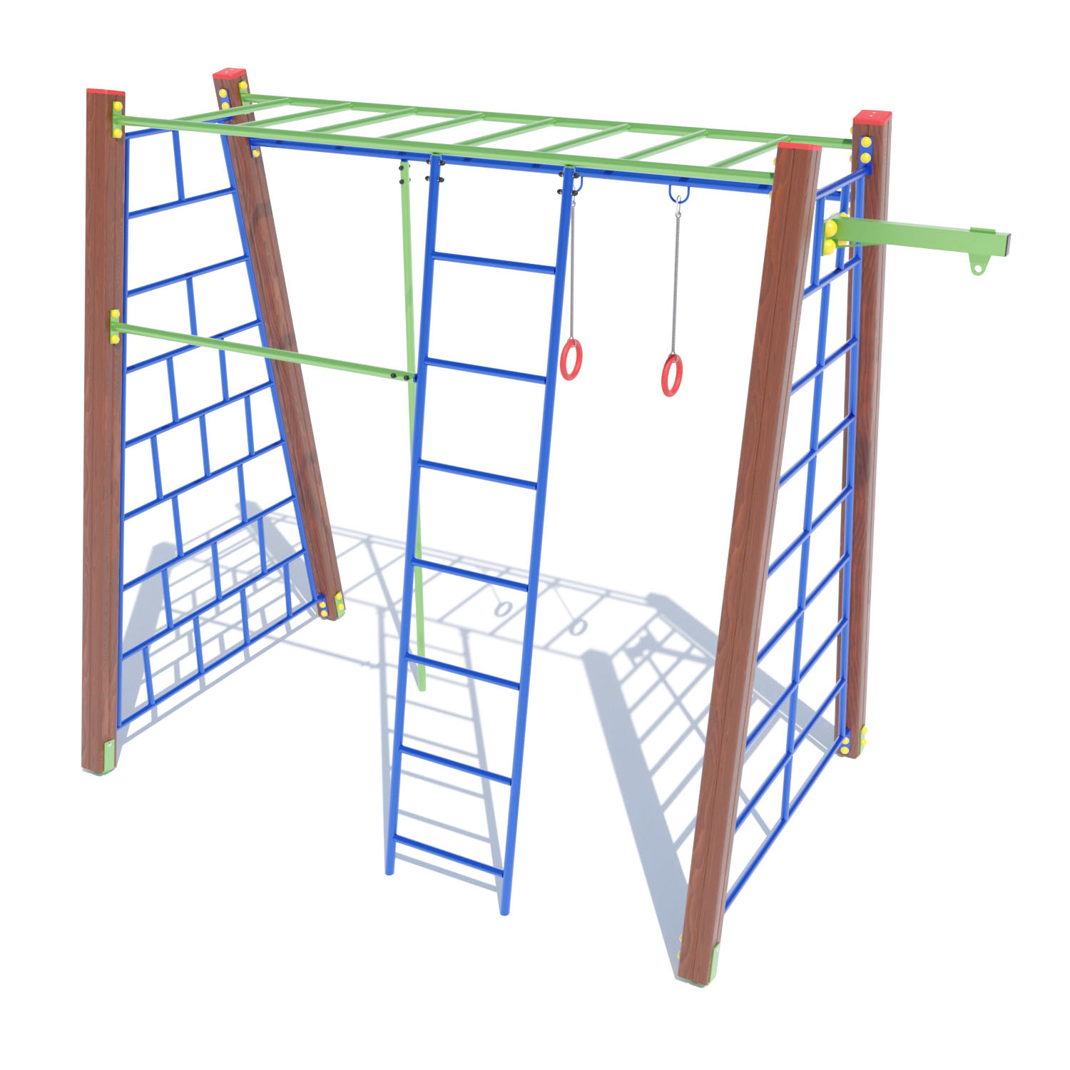 Спортивний комплекс допоможе розвивати дітям витривалість, спритність, тренувати різні групи м'язів і рости фізично розвиненими. Встановлене на вулиці гімнастичне обладнання забезпечить тренування в будь-який зручний час без будь-яких обмежень.