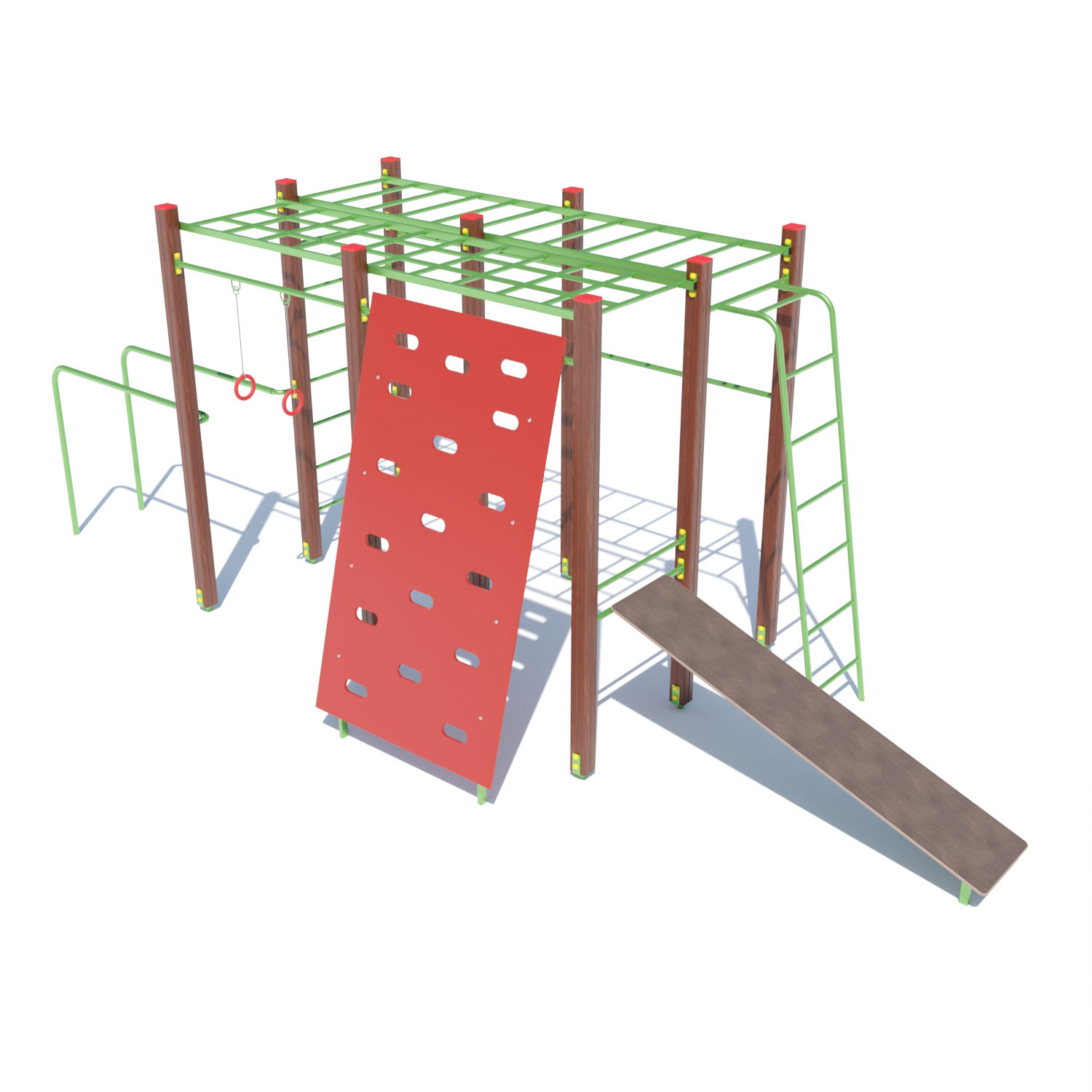 Зображений невеликий комплекс може зайняти відразу кілька дітей одночасно, тому вони навчаться ще і проявляти свої навички спілкування і заводити нових друзів.